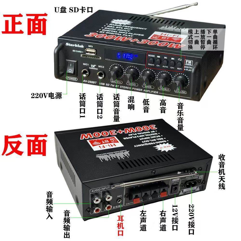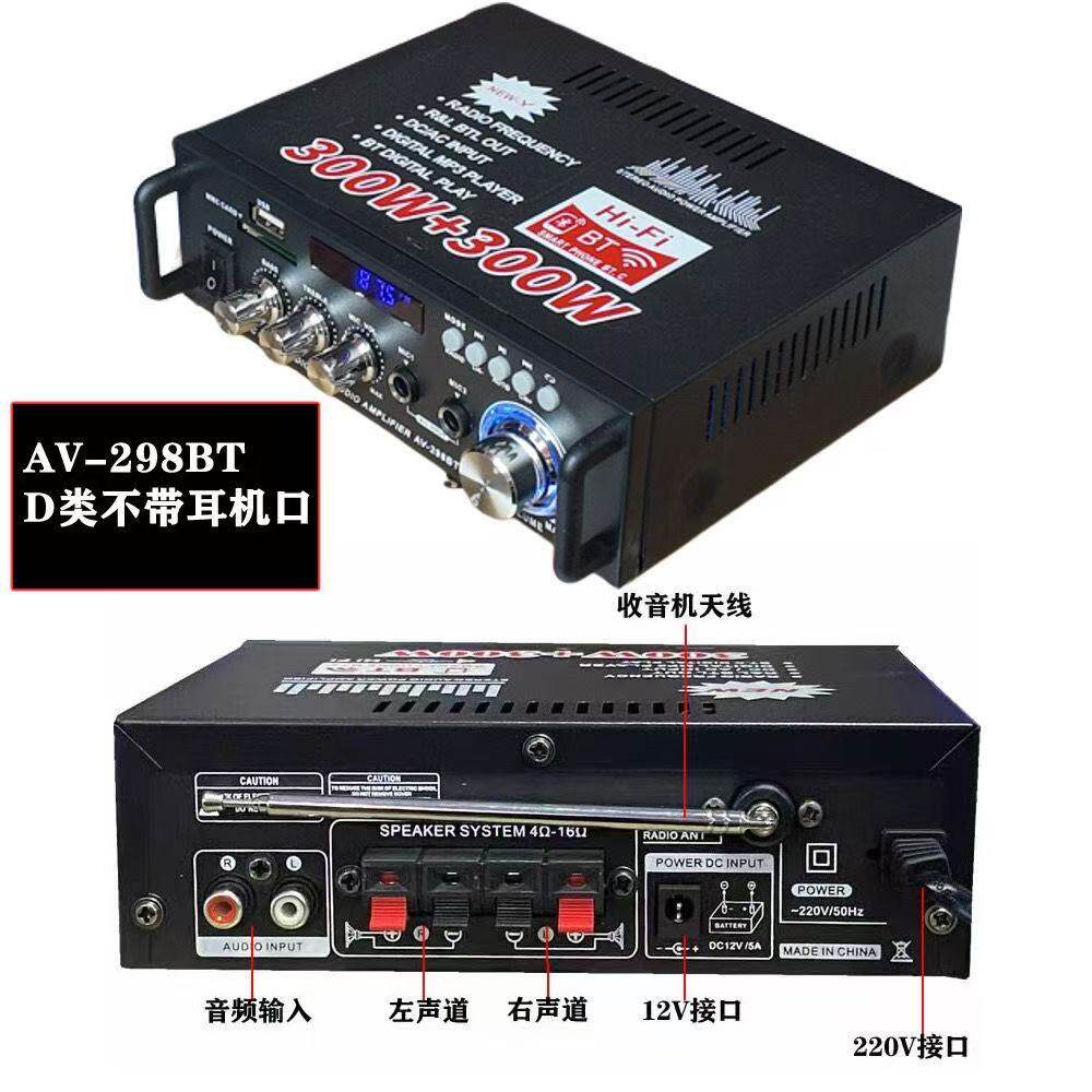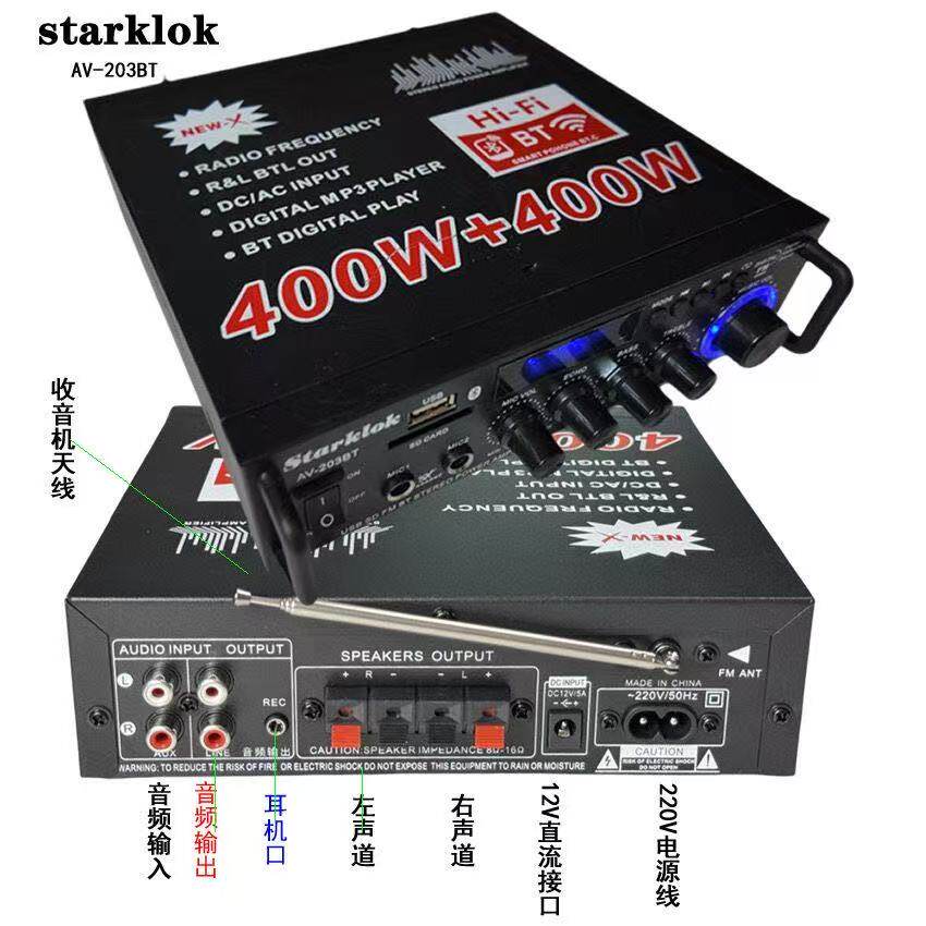 AV203bt新款甲乙类迷你小型功放机12v220v带耳机口音频输出口功放