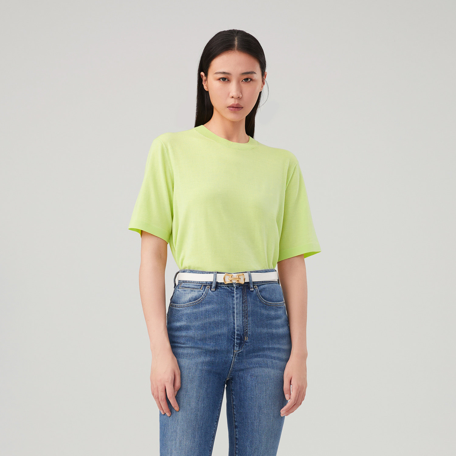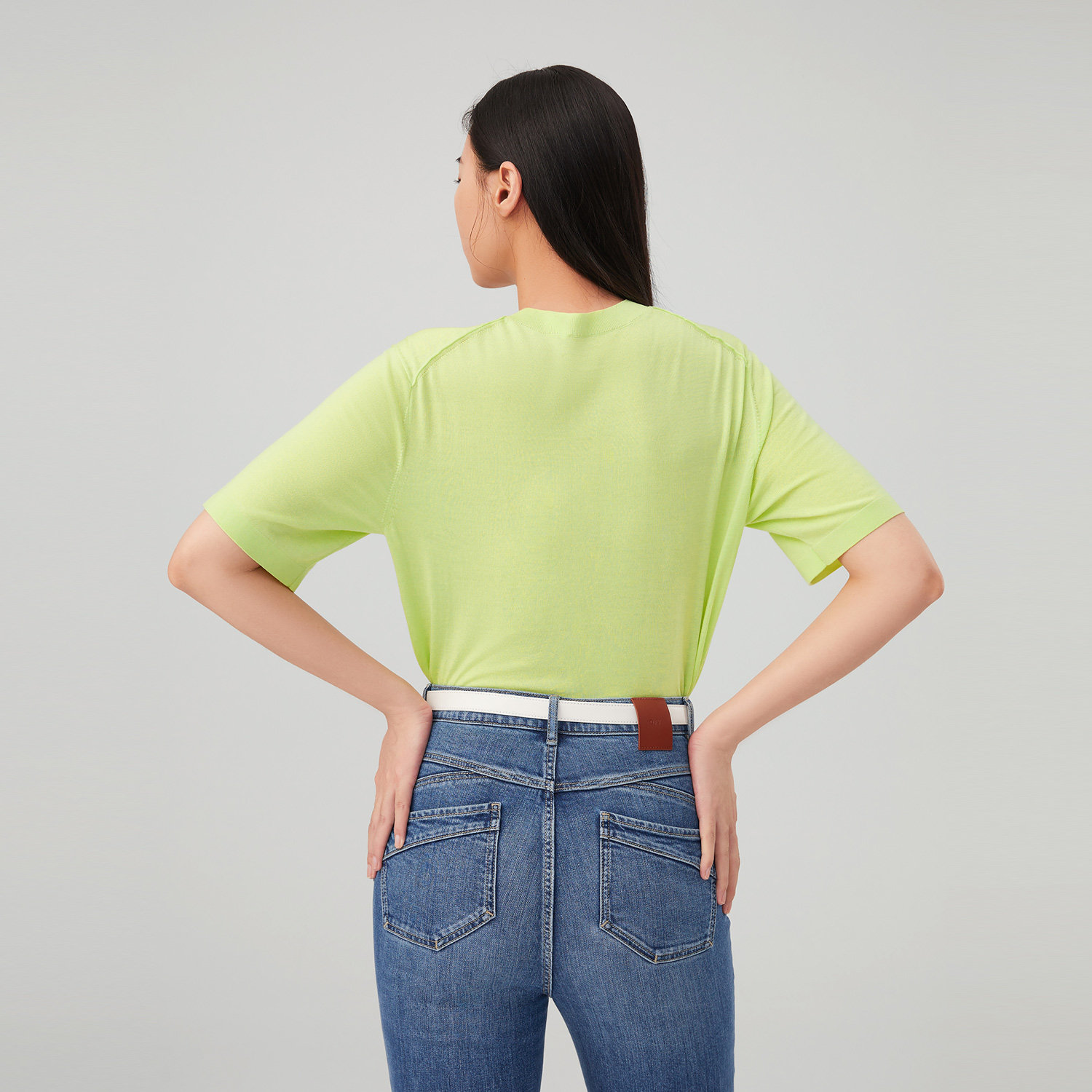 三福长袖上衣2025新款秋季圆领修身针织衫简约纯色内搭打底衫女装