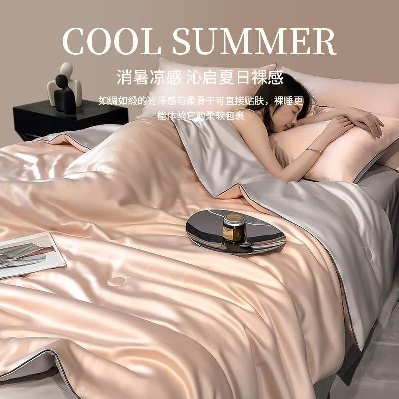夏被夏凉被夏季凉感冰丝空调被四件套双人薄被子可机洗