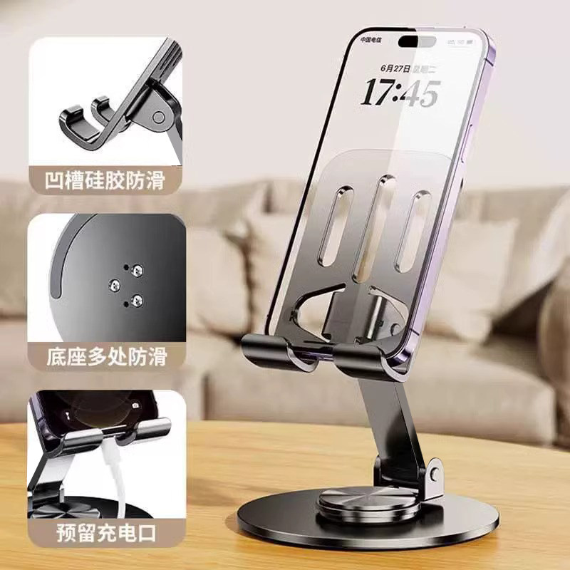全金属手机支架2025新款360°可旋转桌面懒人直播专用手机架平板iPad支撑架万能通用固定架子可调节升降便携