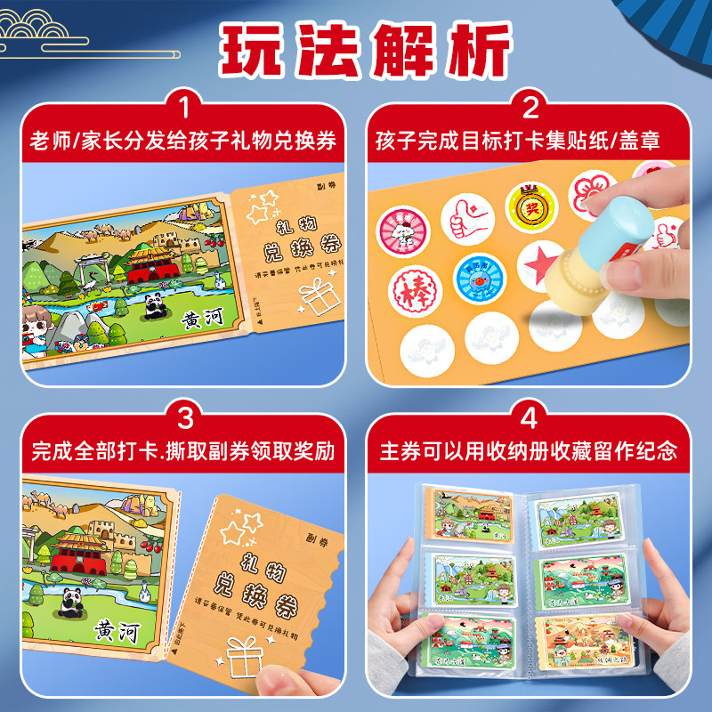 礼物兑换券集章卡学生奖励兑换卡奖励贴纸小学生儿童印章盖章小红花收集本奖励孩子的积分卡心愿存折积分兑奖