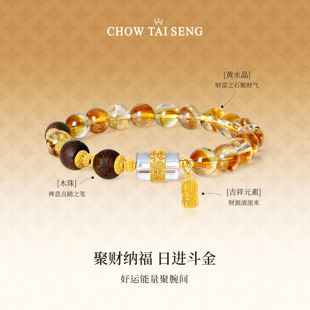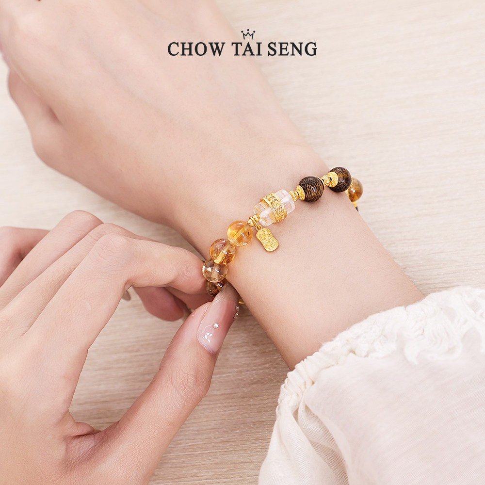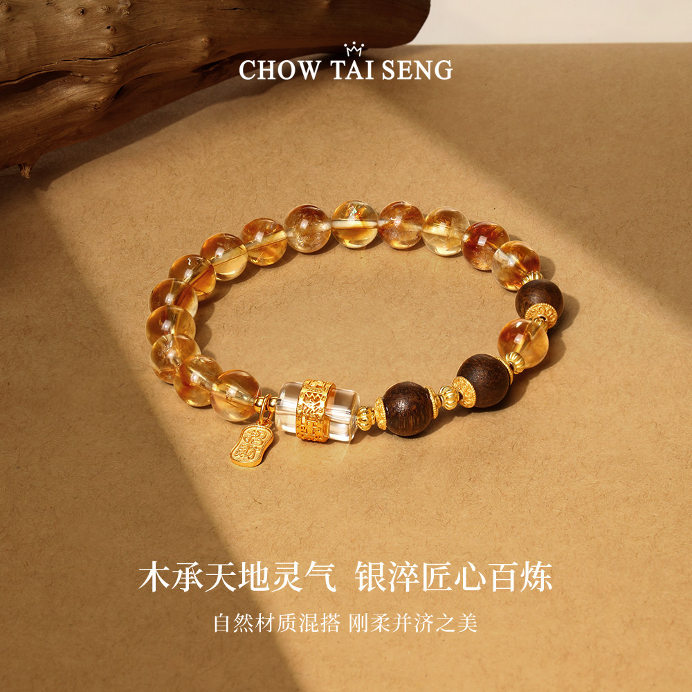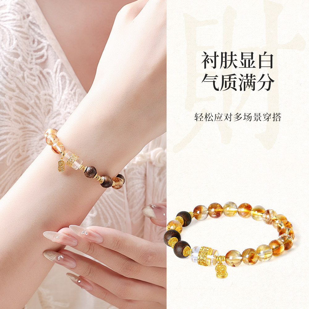 周大生黄水晶手串女款纯银S925国风新中式手链生日礼物实用送女友