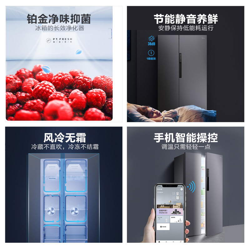 美的570+/606对开双开门两门大容量家用冰箱一级节能风冷无霜超薄