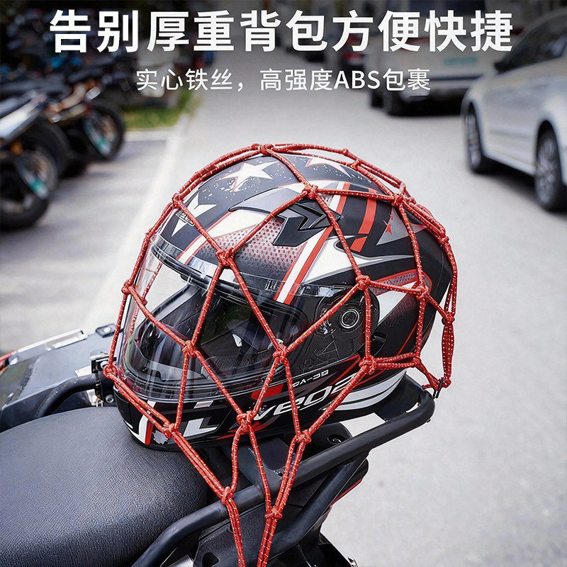 机车安全帽网兜行李网兜袋电动车自行车头盔网反光松紧弹力绳子