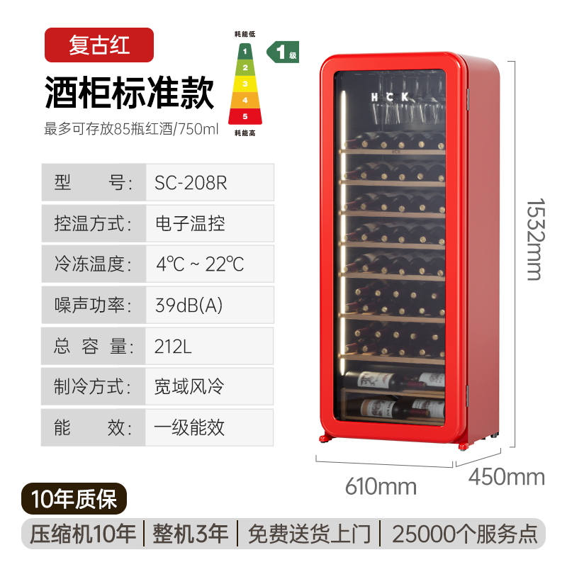 哈士奇SC-208R红酒柜家用玻璃恒温恒湿酒水客厅茶叶冷藏柜雪茄柜
