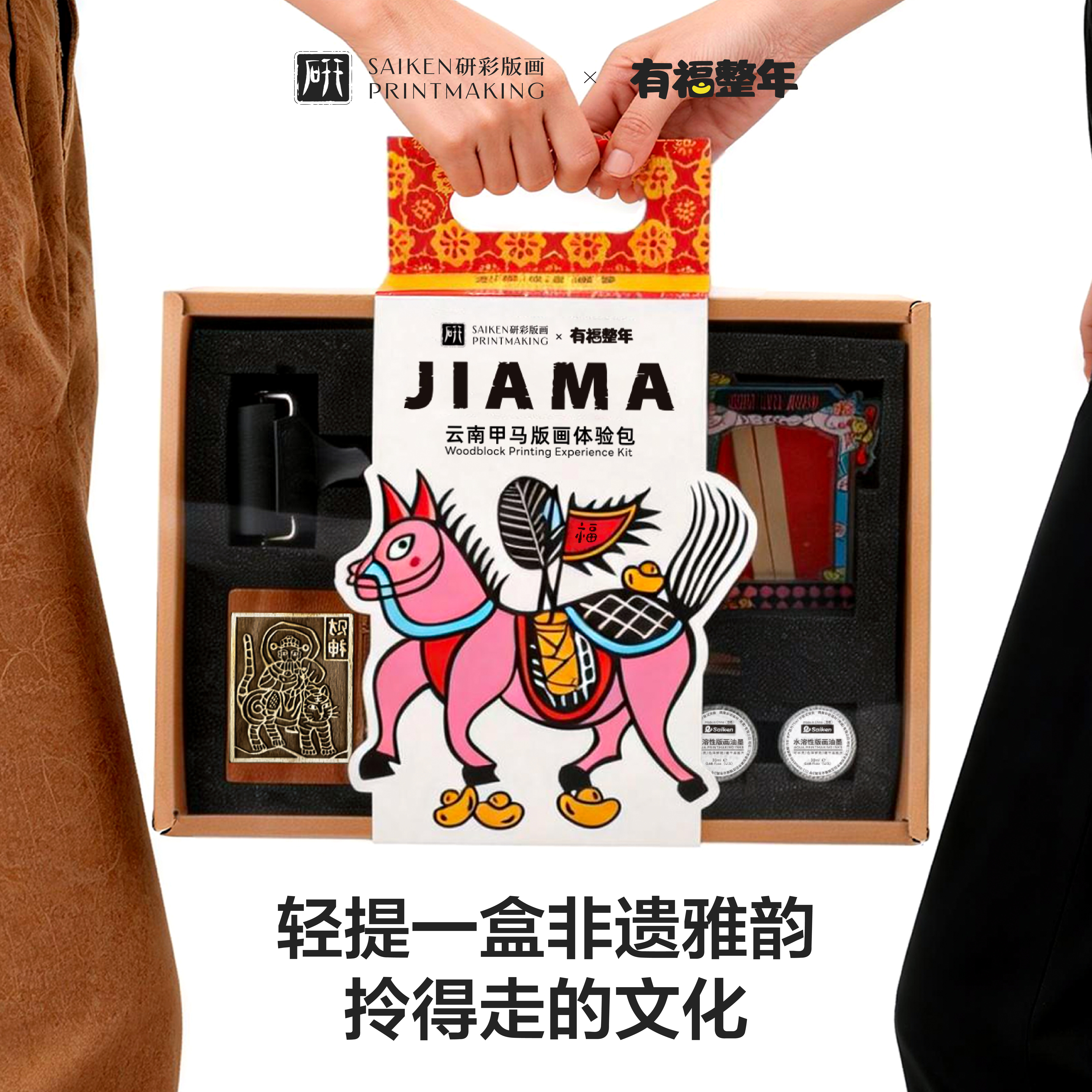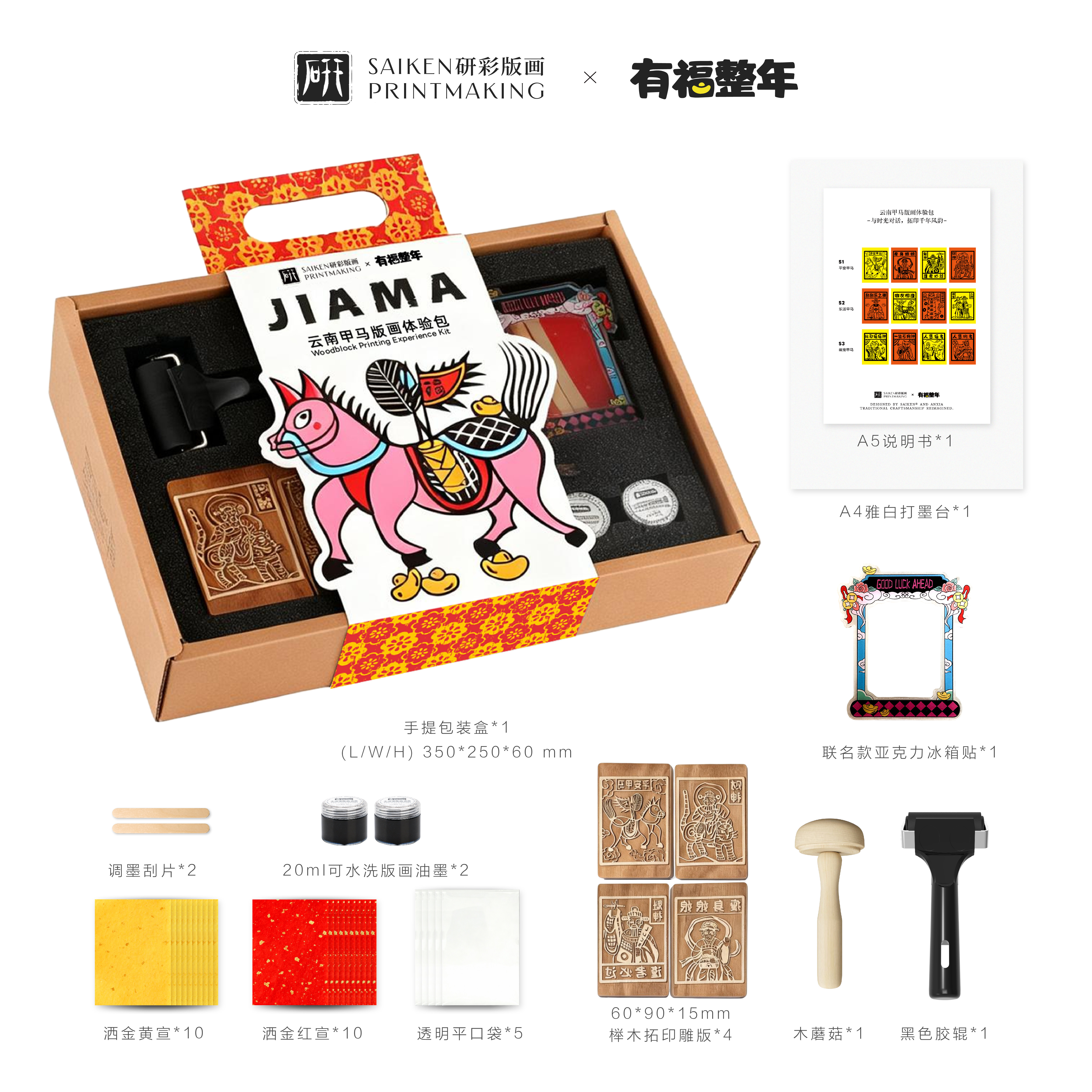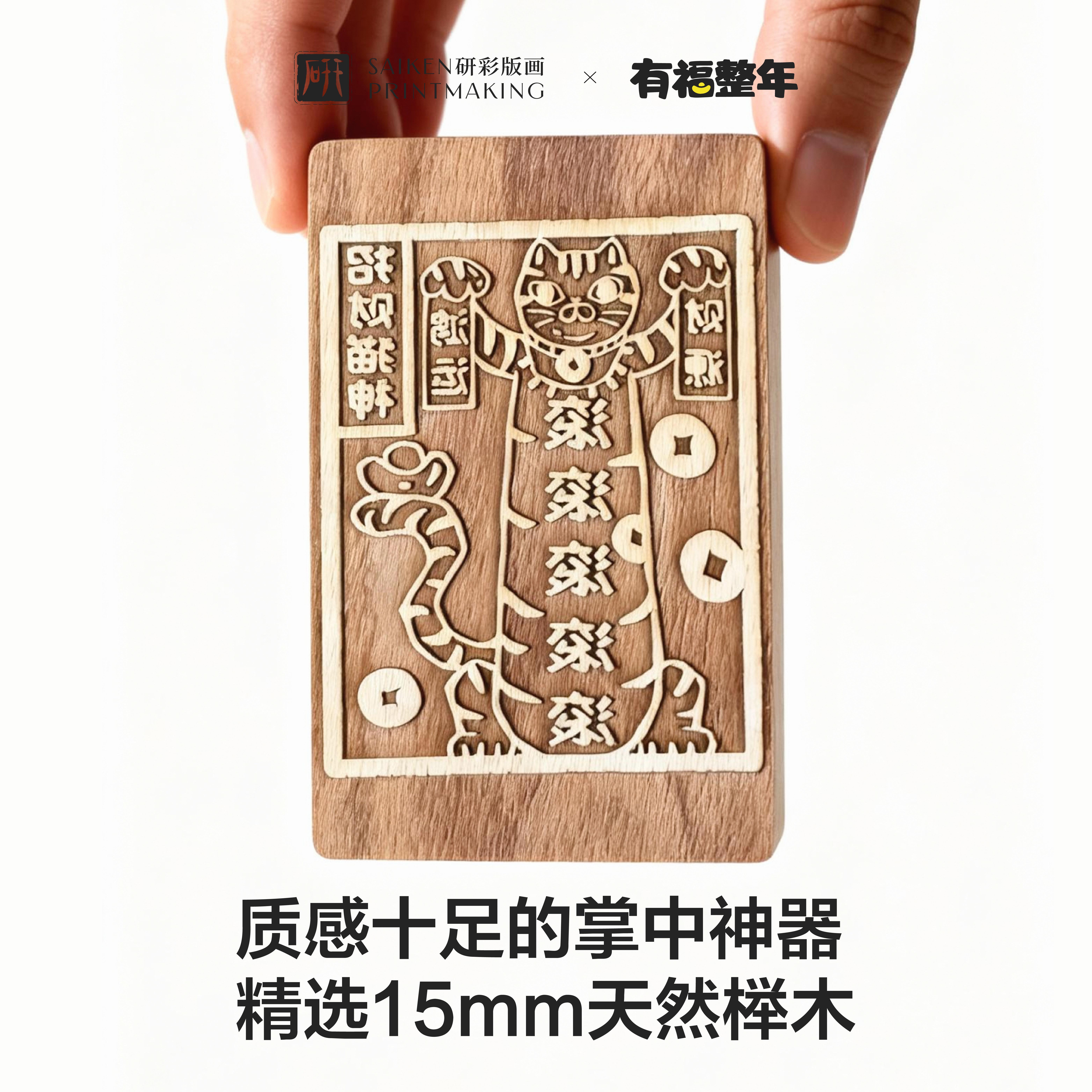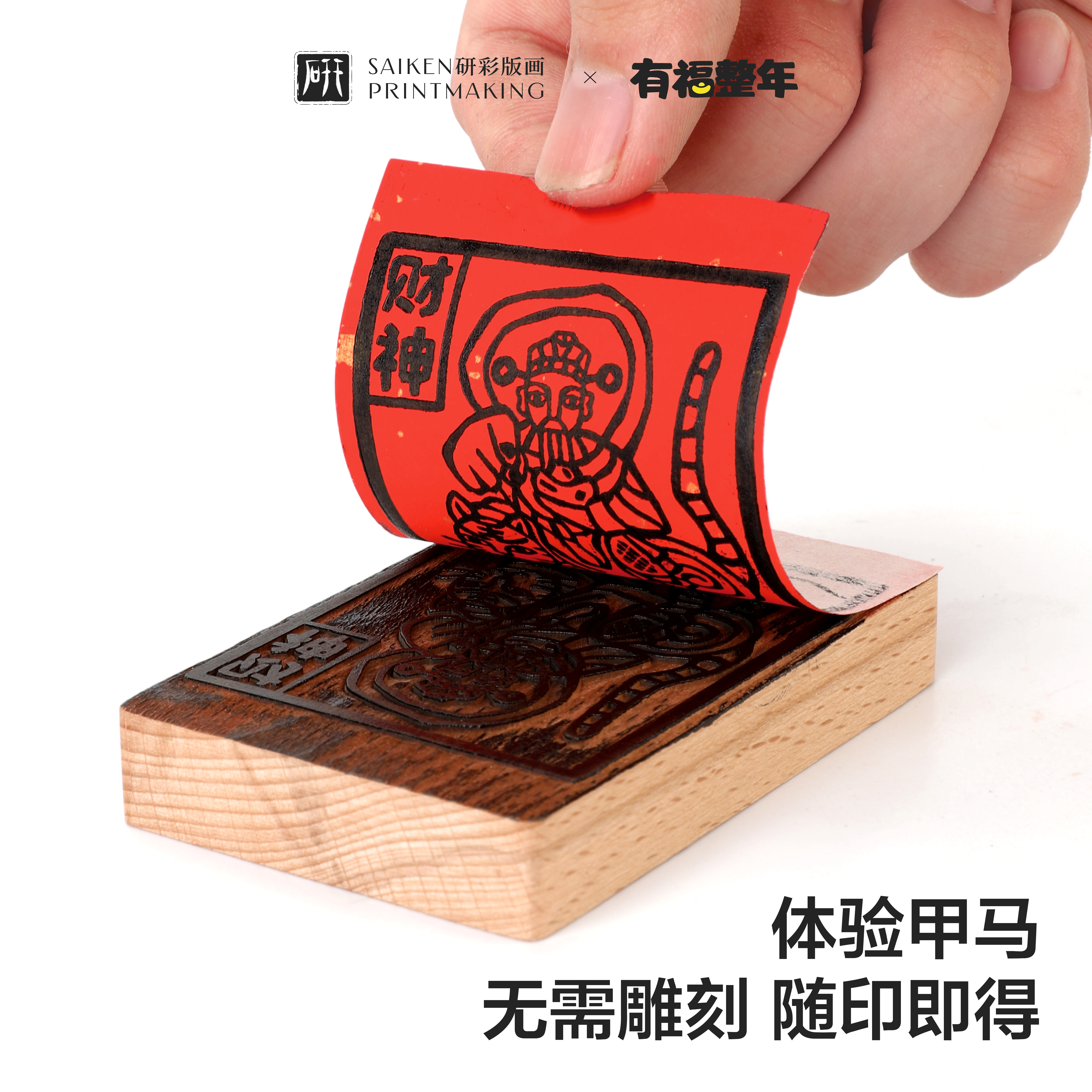 彩研甲马版画套装文创云南非遗拓印章实木雕刻材料diy冰箱贴装饰治愈解压春节纪念品明信片伴手礼生日礼物