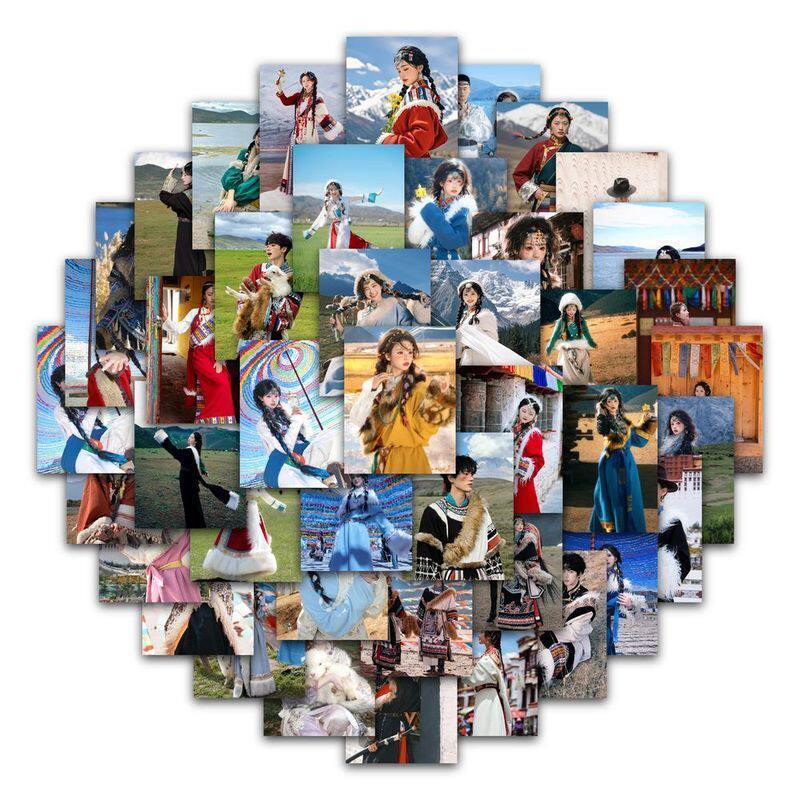 189张藏服美女贴纸简约高颜值创意笔记本手机手账diy装饰贴画防水