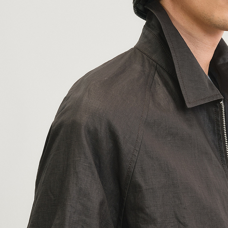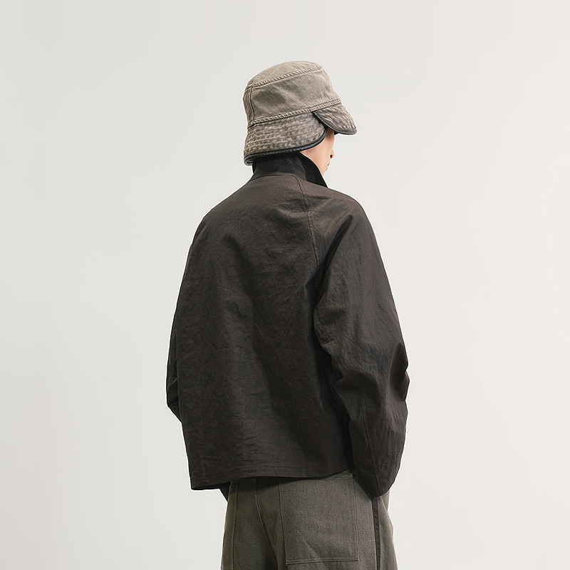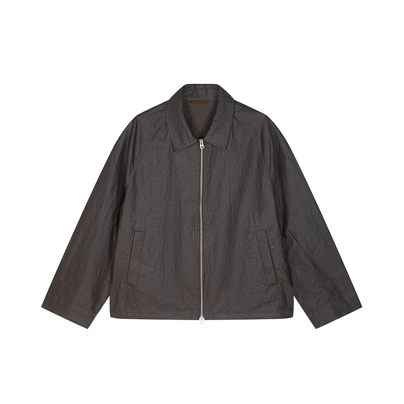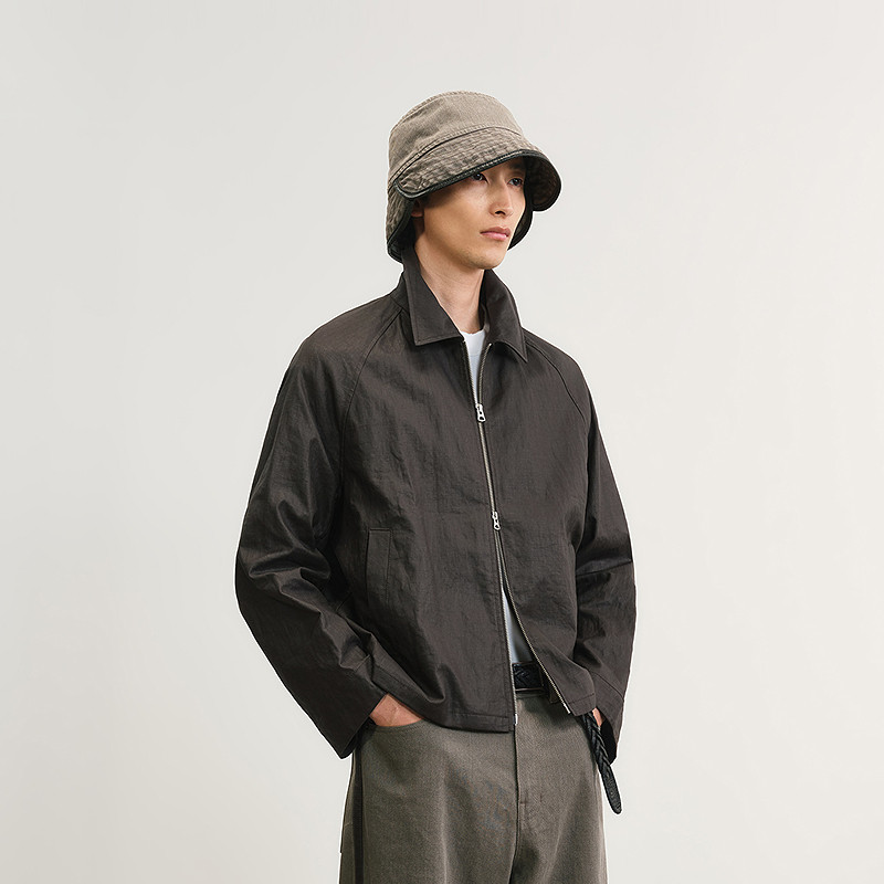 [含亚麻]速写男装早春新款男士翻领短款夹克外套水洗复古运动风