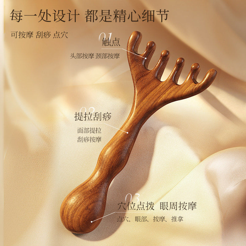 六爪头部按摩梳檀木鹿角梳子按摩头皮经络疏通神器头疗梳工具提拉