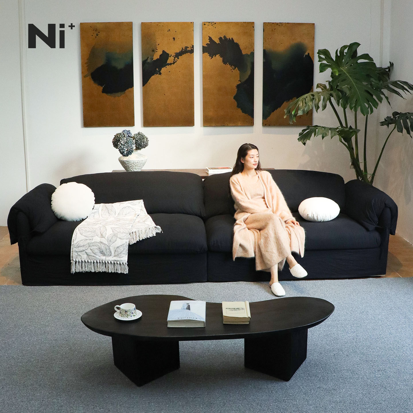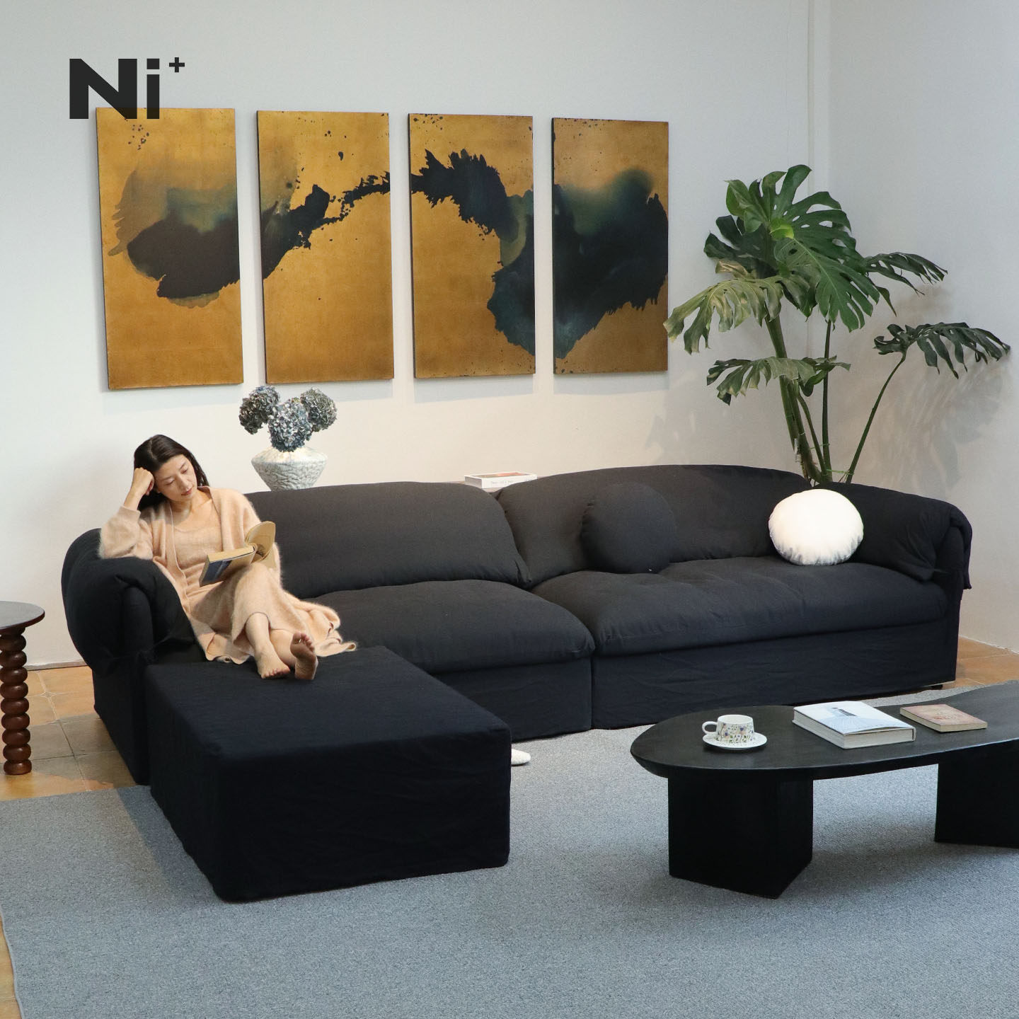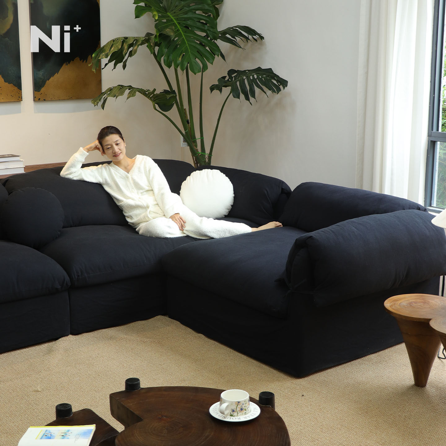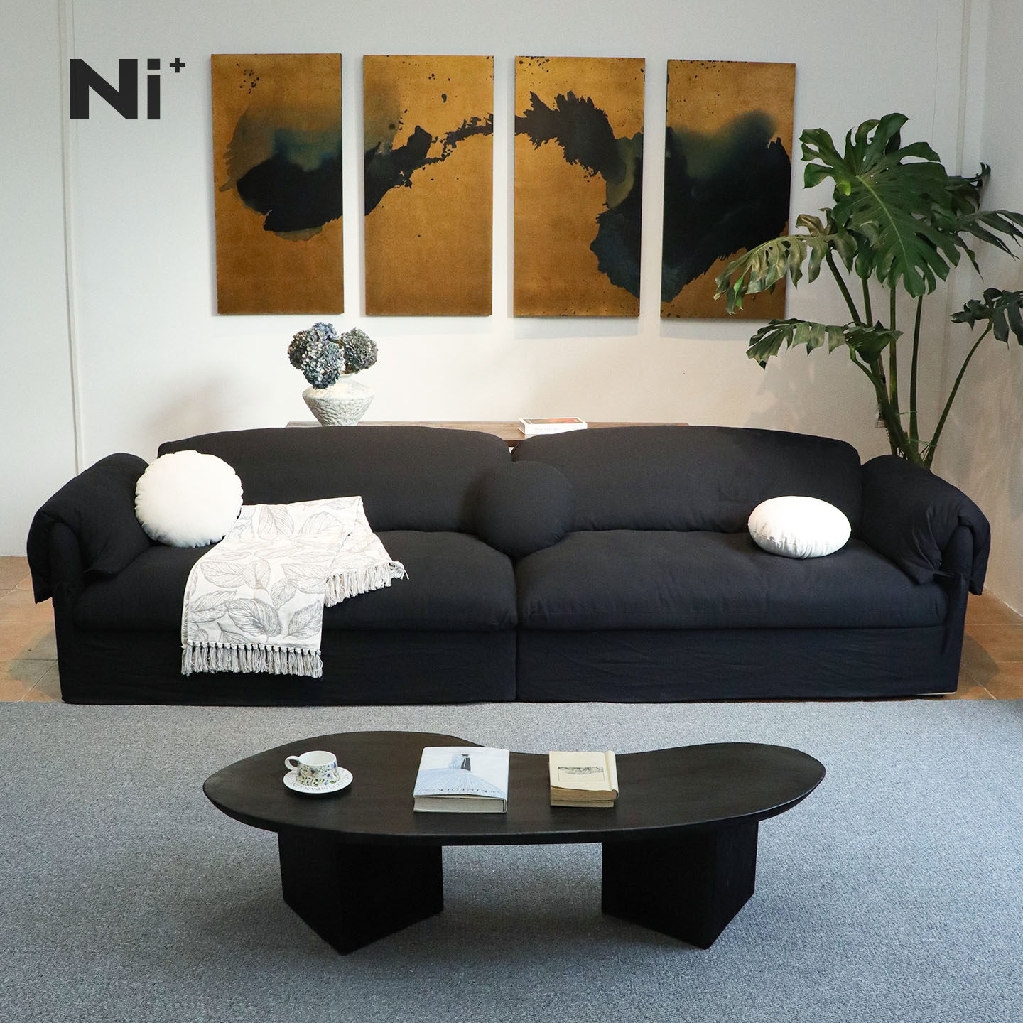 Ni尼家中古侘寂风布艺沙发大户型设计师款意式黑色L型转角沙发