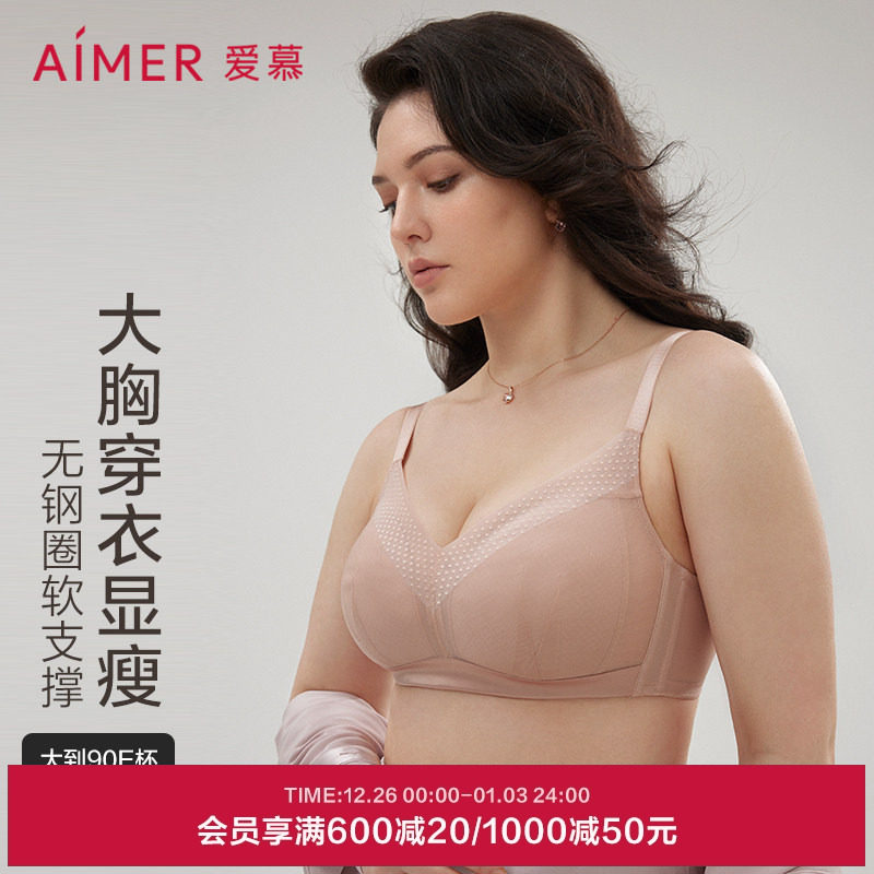 爱慕内衣女无钢圈抗菌蜂巢网眼透气薄杯B-E大胸显小大码文胸