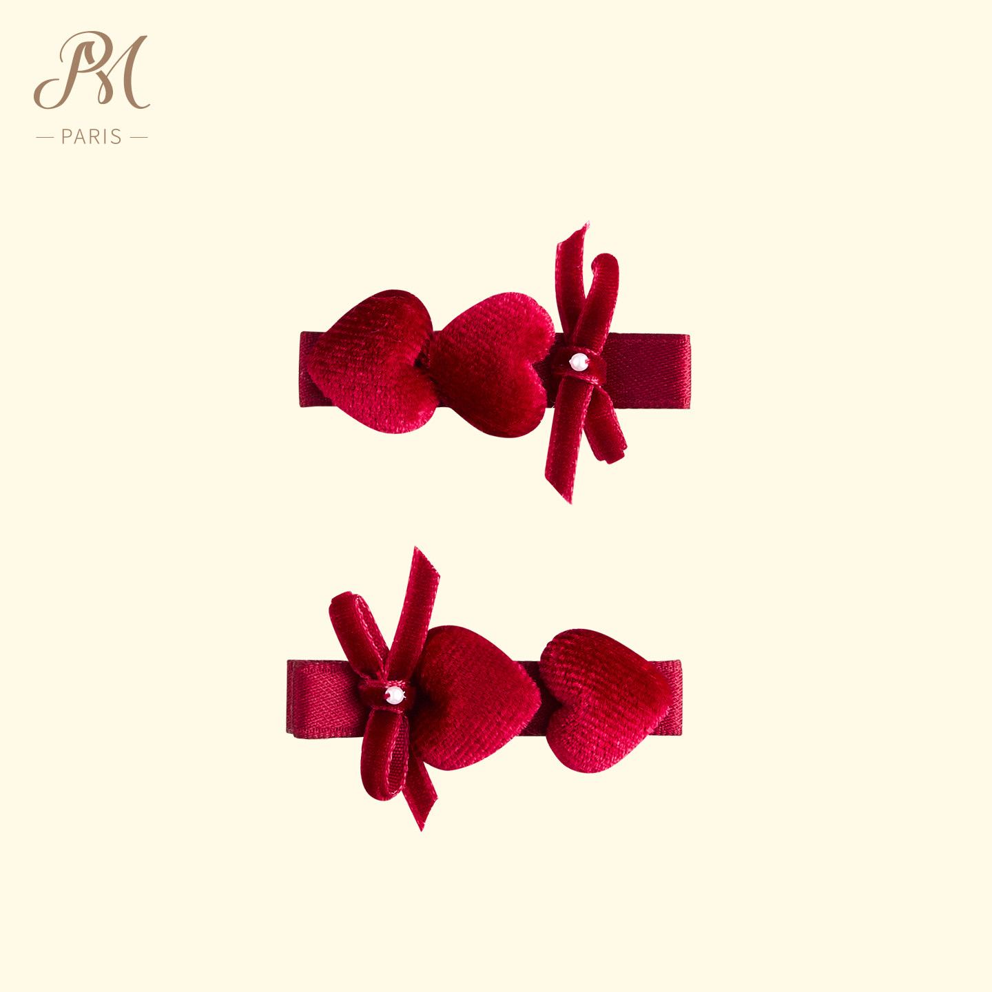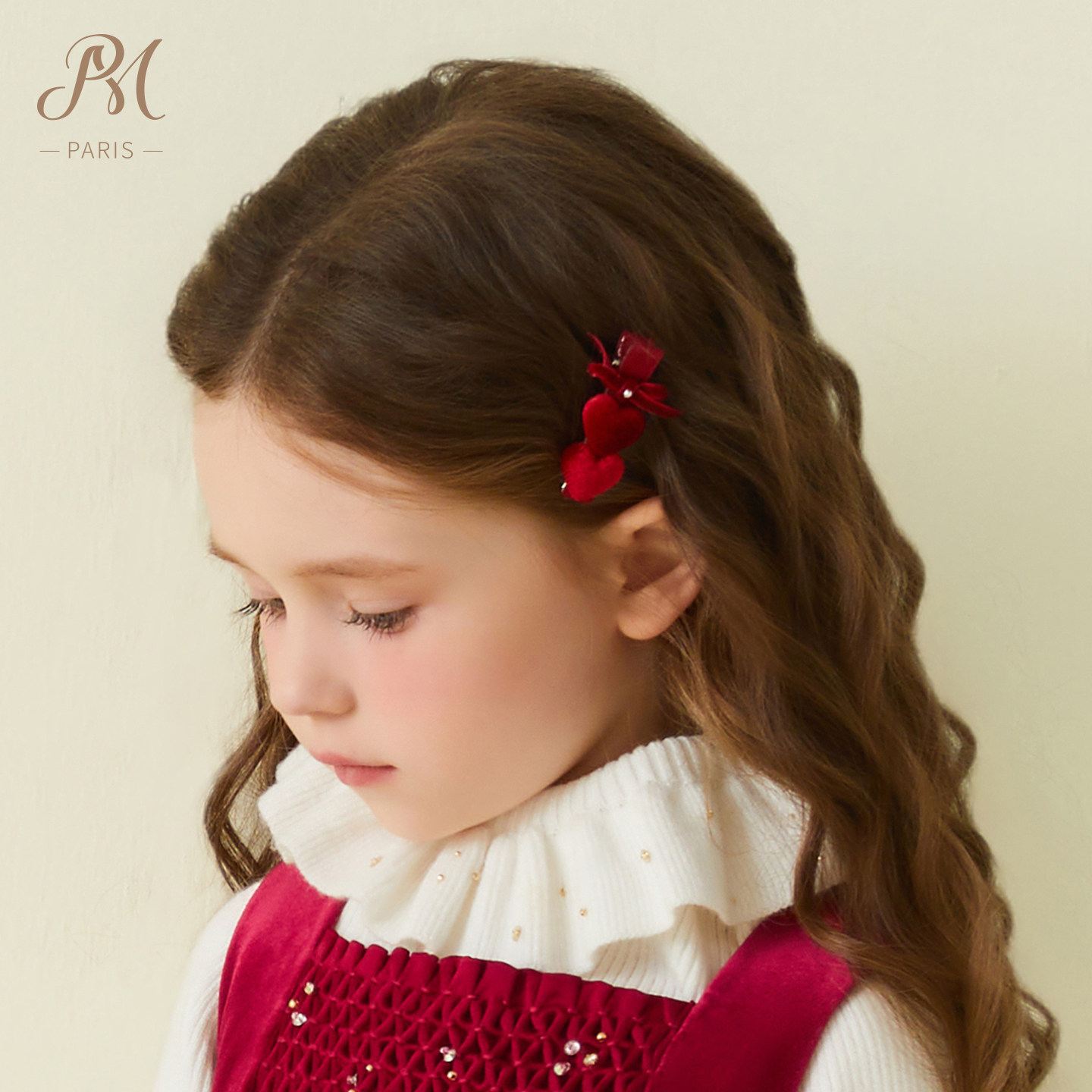 Petite Marguerite小雏菊童装·韩系甜美高级感红色植绒爱心发夹