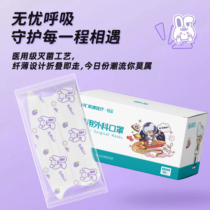振德医疗医用外科口罩一次性灭菌成人儿童单独装女高颜值夏季自营
