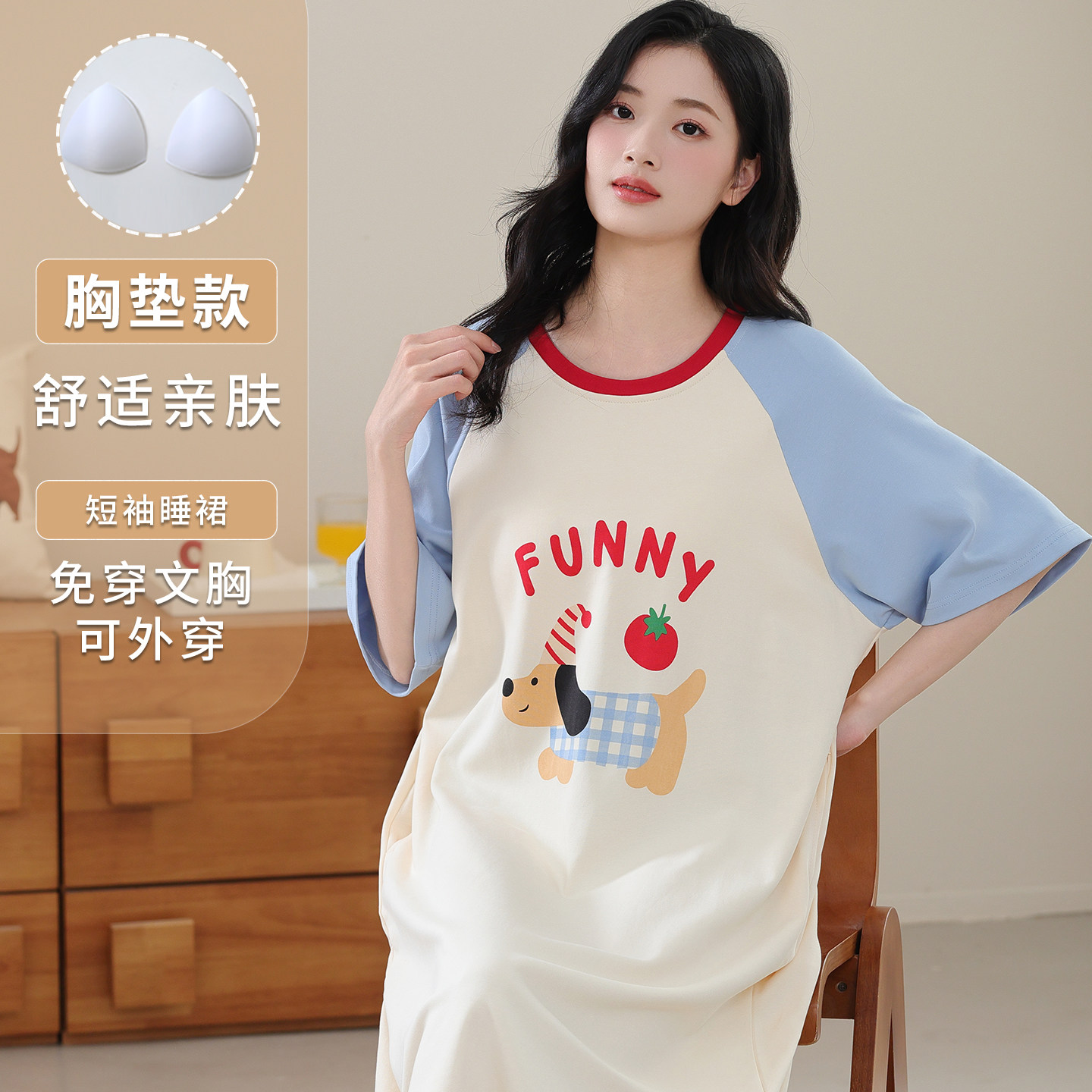 2026年睡衣甜美女士夏季自带胸垫短袖卡通宽松睡裙家居服圆领新款