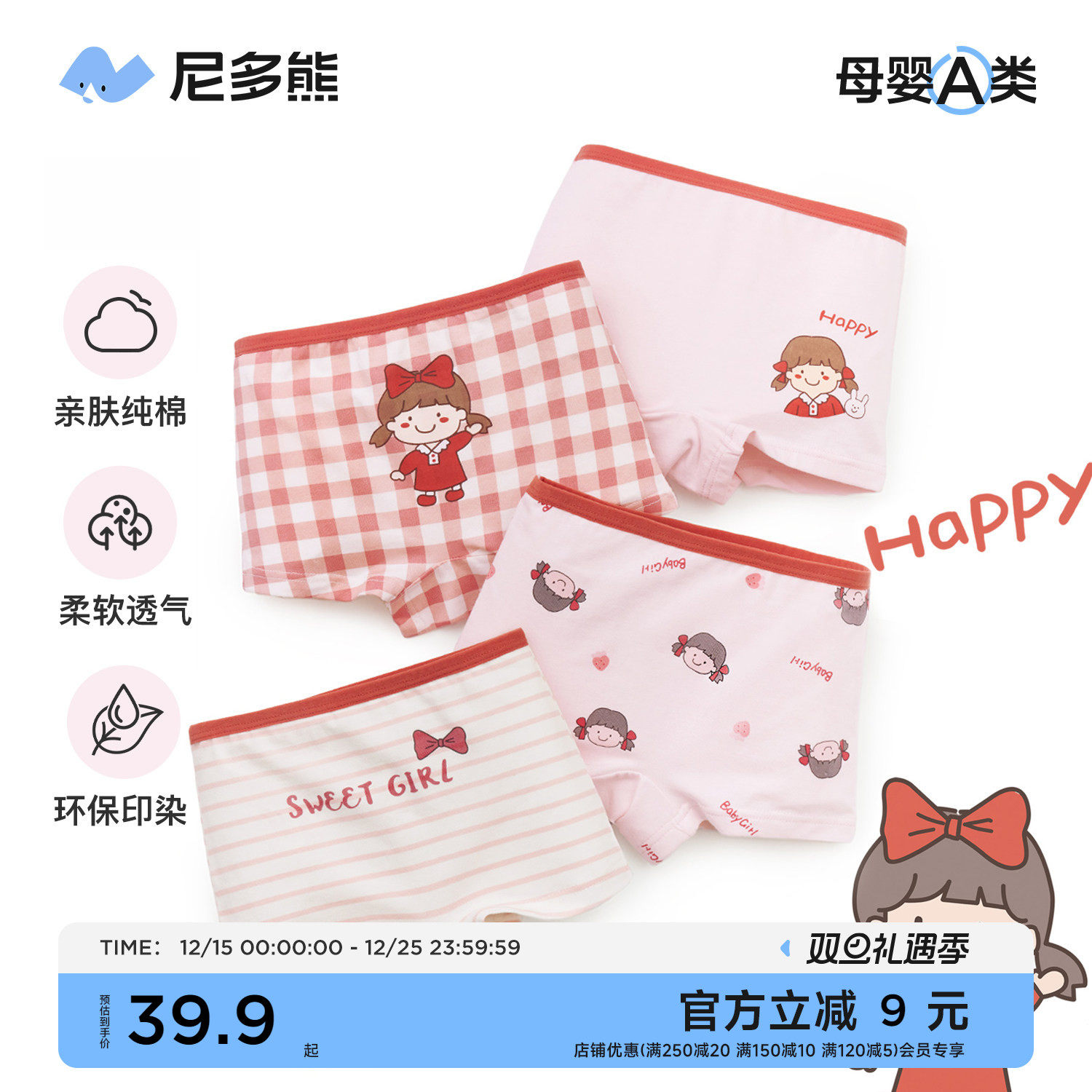 尼多熊女童内裤平角纯棉三角四角儿童红内裤女宝宝不夹PP小童短裤