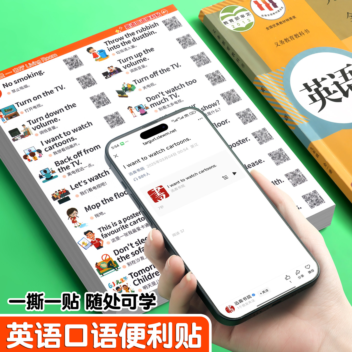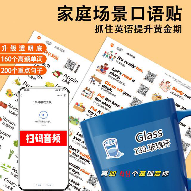 家庭情景英语口语便利贴纸日常生活便签贴纸女孩儿童学习用品标签贴英语贴纸小学生英语单词启蒙卡通贴纸