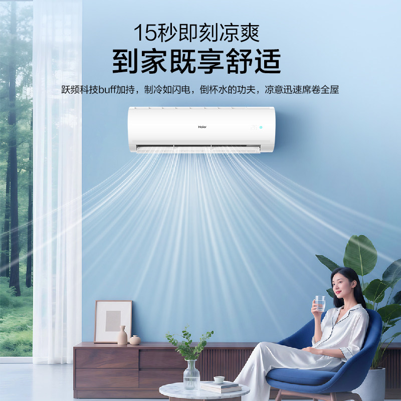 【纯铜管】海尔空调1.5匹1匹家用一级变频冷暖挂机净省电E1旗舰店