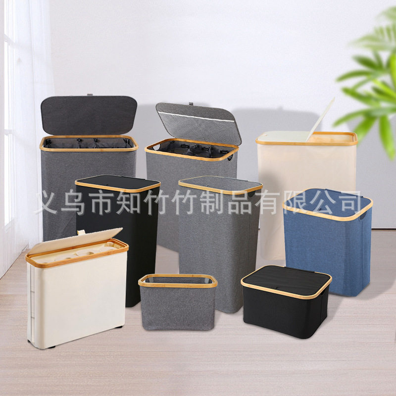 跨境脏衣篮卧室配内袋带盖可折叠竹木脏衣服收纳筐浴室大号脏衣篓