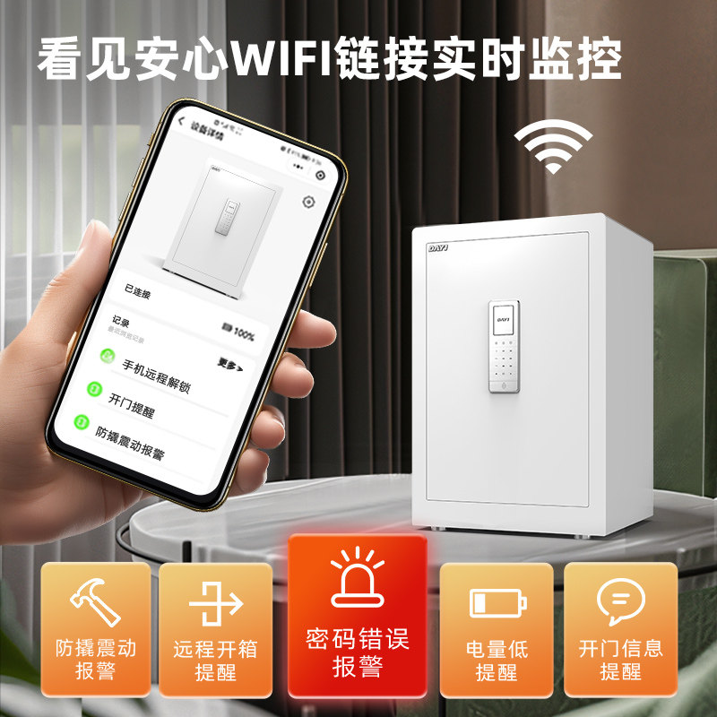 【新品升级】大一保险柜 家用小型60CM指纹保险箱 WiFi手机智能防盗办公夹万床头密码保管箱2026新款