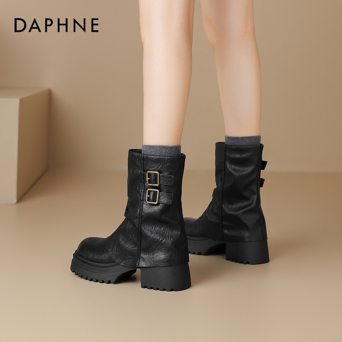达芙妮美拉德短靴女2026新款冬季棕色西部牛仔靴裤管靴厚底马丁靴