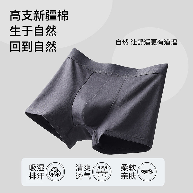 日本无印优品纯棉内裤男新疆长绒棉无缝全棉纯色透气平角裤中腰