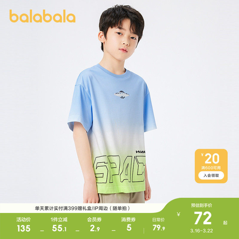 巴拉巴拉儿童短袖夏装打底衫男童t恤中大童印花渐变速干上衣凉感
