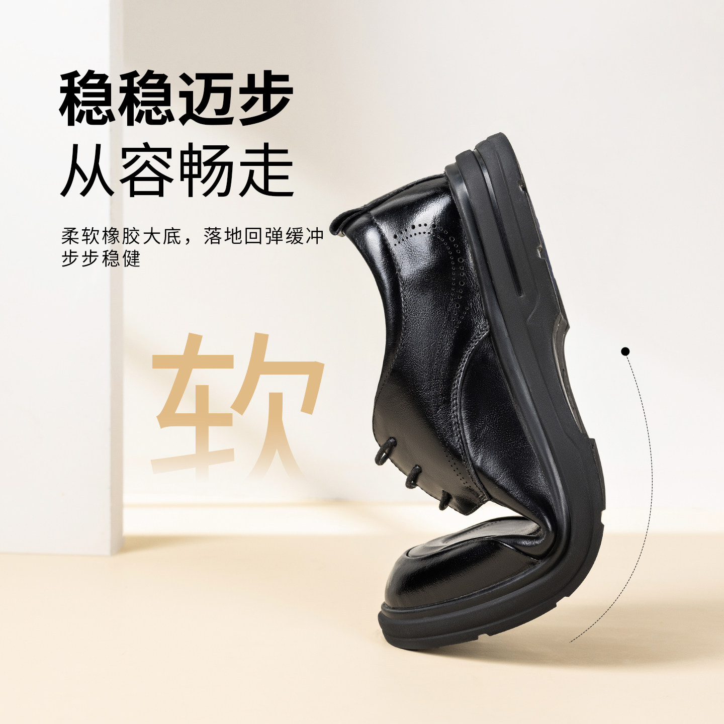 海澜之家男鞋秋冬季正装商务真皮布洛克内增高皮鞋男款加绒德比鞋