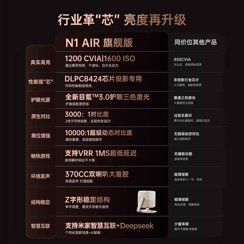 【年货节惊喜价】JMGO/坚果N1 Air旗舰版三色激光投影仪办公家用超高清投影机可连手机三色激光家庭影院 268