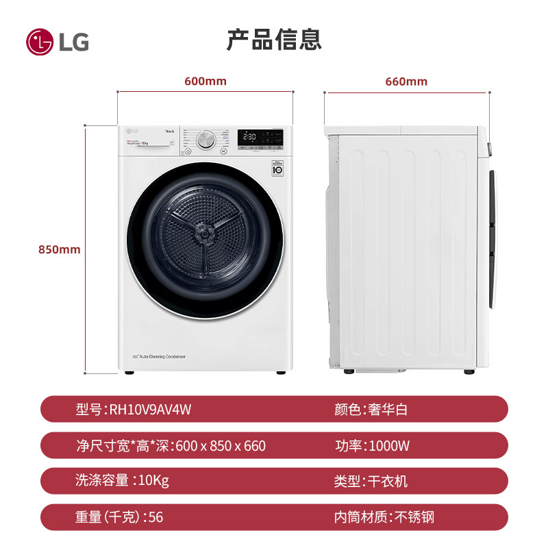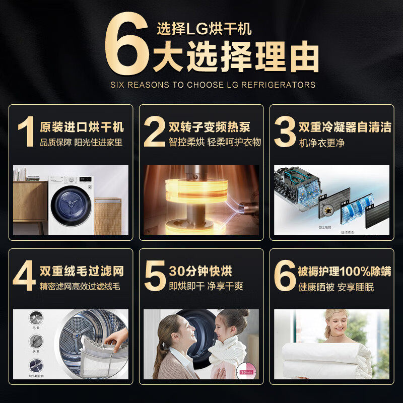 LG大容量10KG原装进口双变频热泵烘干机除菌除螨RH10V9AV4W 151