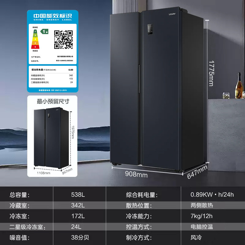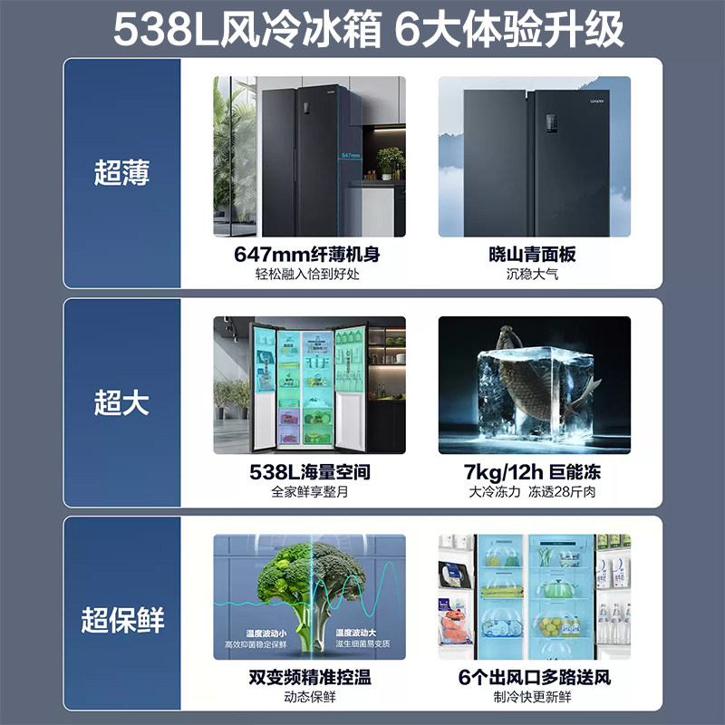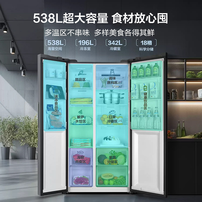 政府补贴海尔出品统帅538L对开双开门无霜一级变频大容量家用冰箱