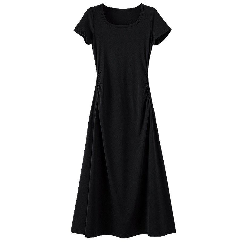 短袖莫代尔长裙大摆显瘦A字超长款打底宽松夏休闲度假连衣裙女装