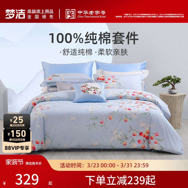 梦洁家纺三四件套纯棉全棉夏天被套套件床笠床单儿童宿舍床上用品