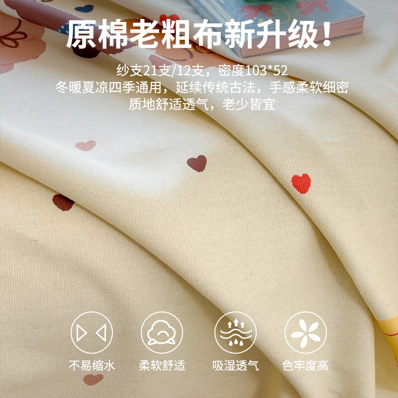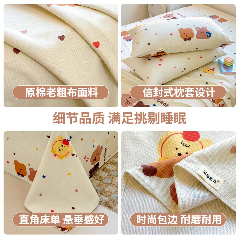纯棉老粗布床单单件双人100全棉单人宿舍加厚被单枕套三件套秋冬