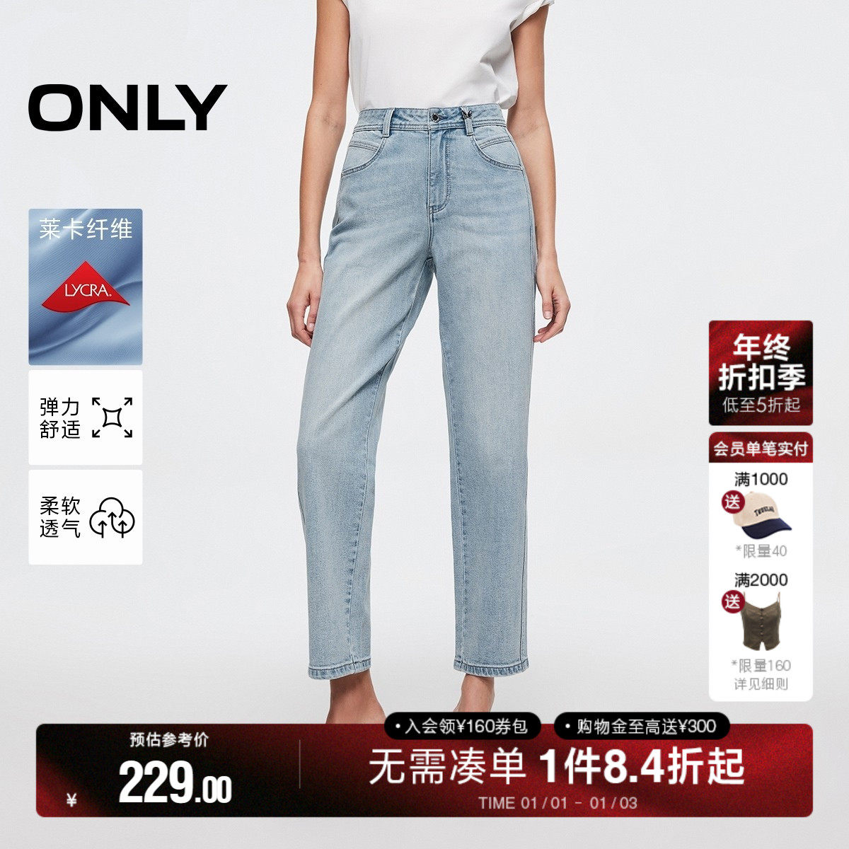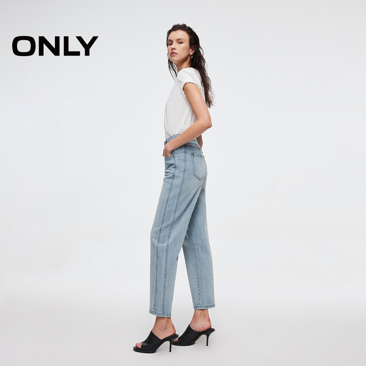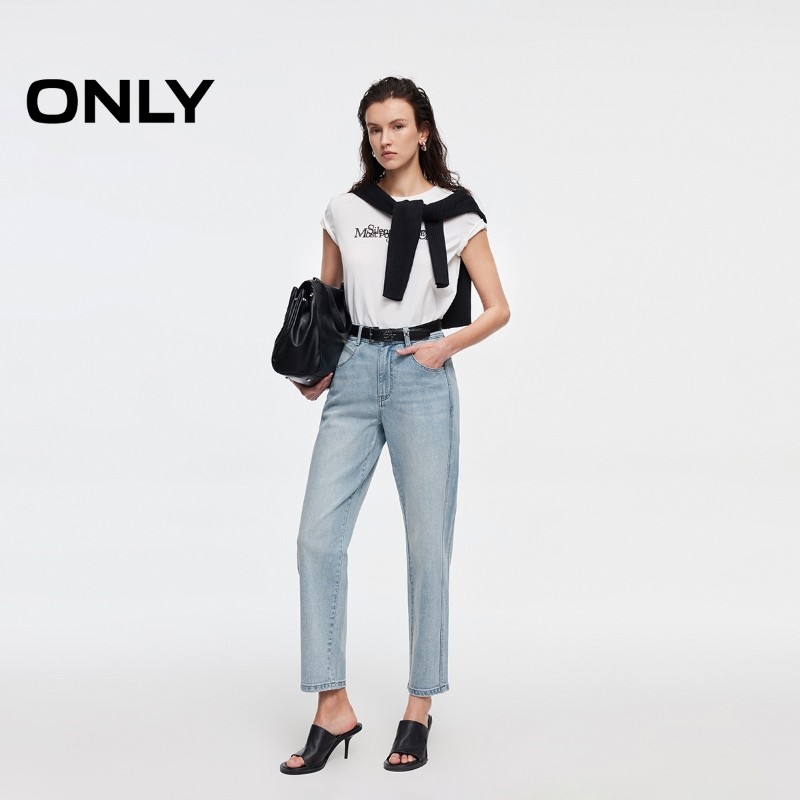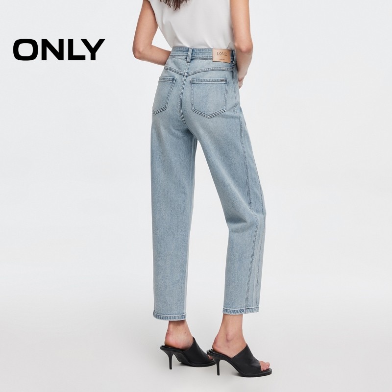 ONLY2025秋季新款复古水洗高腰梨型妈咪裤锥形裤九分牛仔裤女