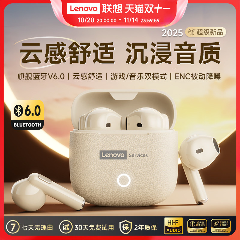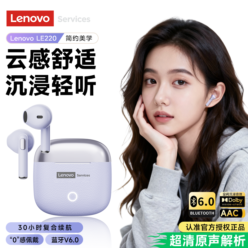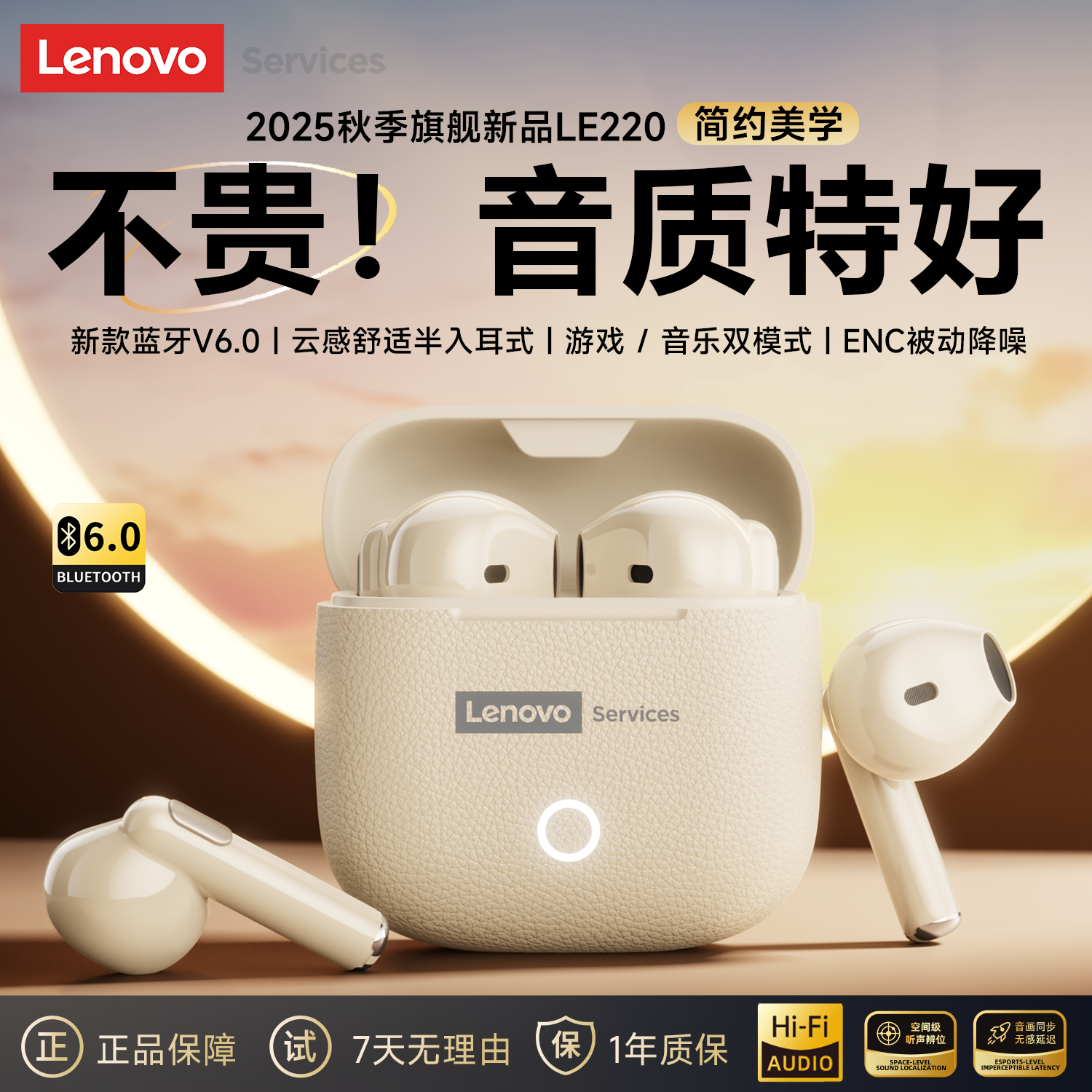 联想LE220新款蓝牙耳机运动降噪女生半入耳电竞游戏无线超长续航