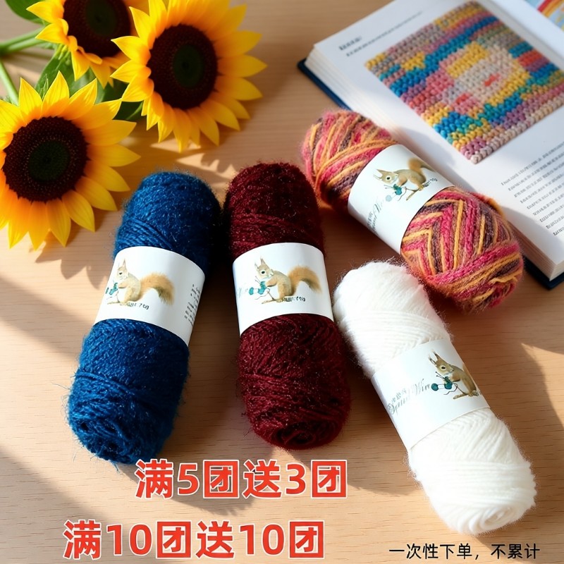 松鼠绒毛线亮丝金丝绒线中粗松鼠纱手工编织帽子围巾宝宝线材料包