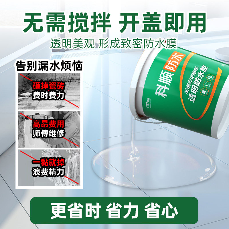 科顺透明防水胶涂料免砸瓷砖外墙窗台卫生间专用补漏裂缝渗水聚脲