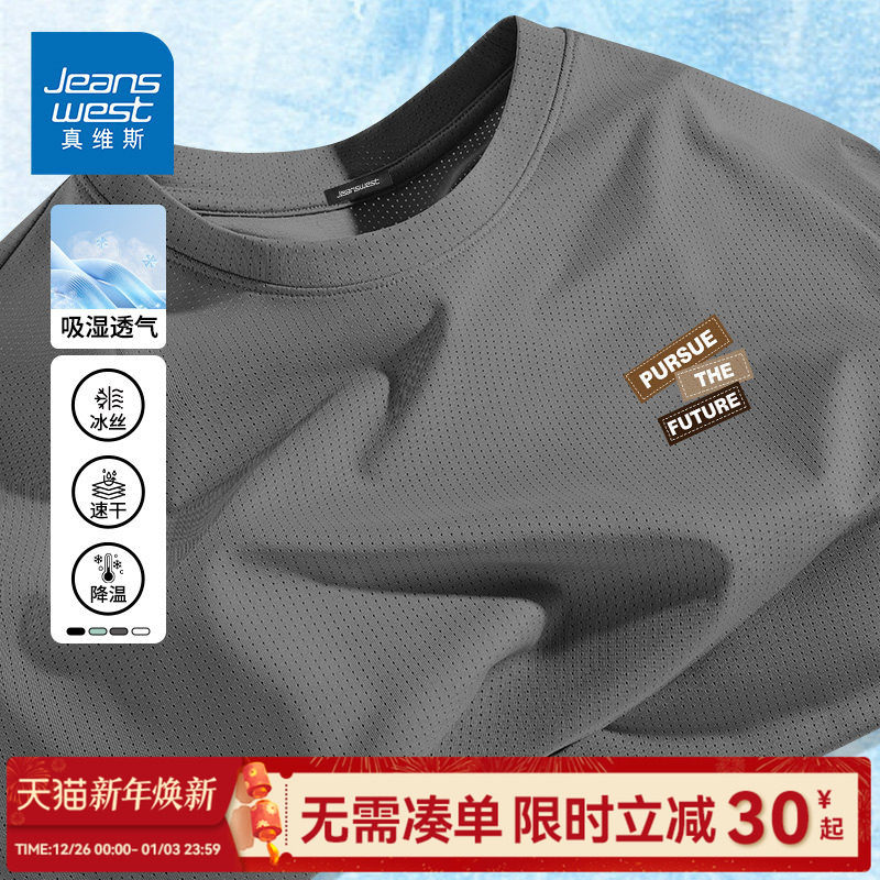 GV真维斯凉感速干短袖男款2025夏季新款薄款男士运动t恤冰丝半袖C