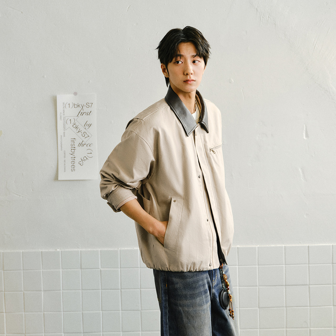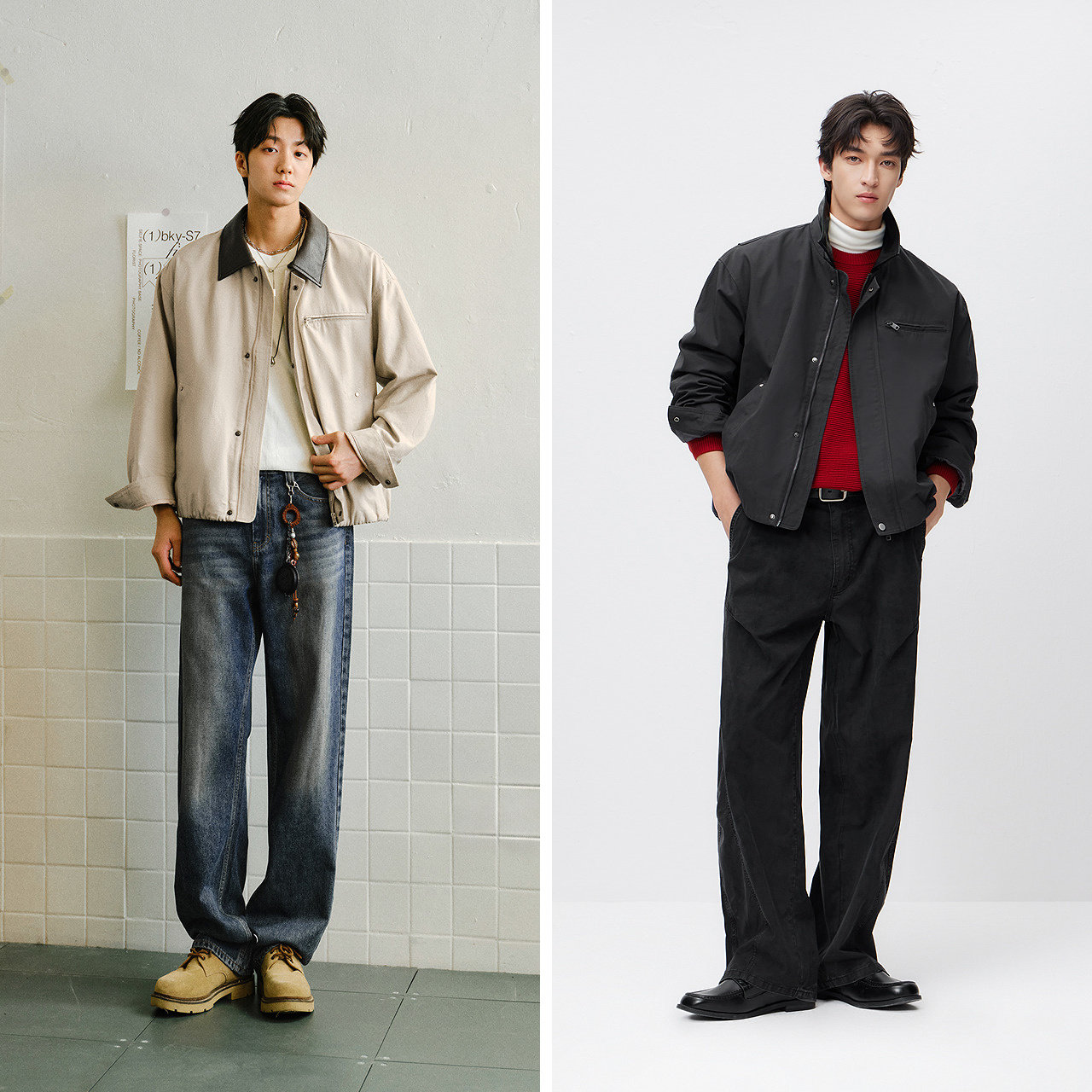 花苞翻领夹克 复古拼皮外套 男女同款