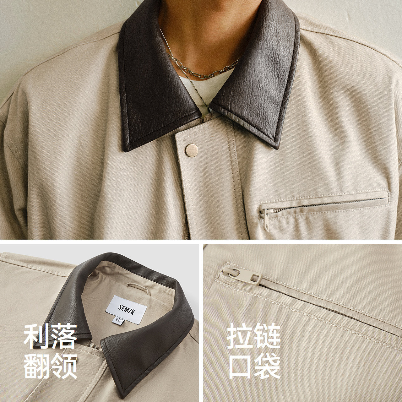 森马拼接翻领底特律外套2026春季新款复古工装哈灵顿夹克男女同款