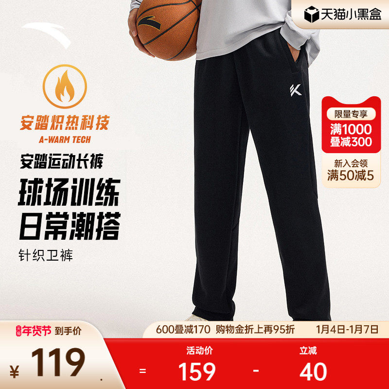 安踏KT运动长裤男裤冬季新款直筒裤黑色休闲卫裤宽松训练跑步裤子