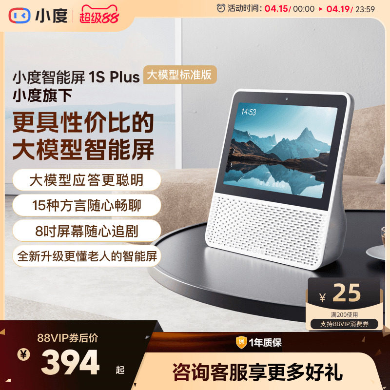 小度智能屏1S Plus音箱老人孩子蓝牙音响视频通话智能蓝牙音箱