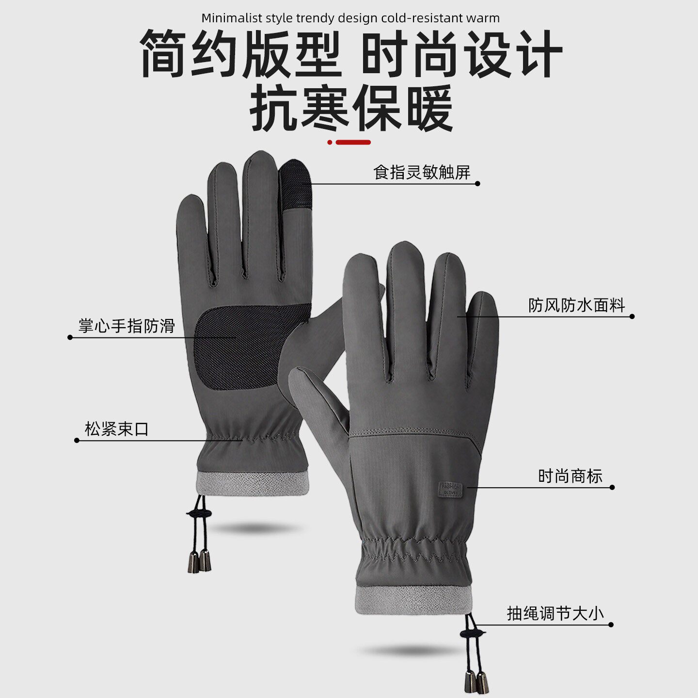 骆驼手套冬季男士户外跑步运动防寒薄绒保暖女可触屏防滑骑行手套