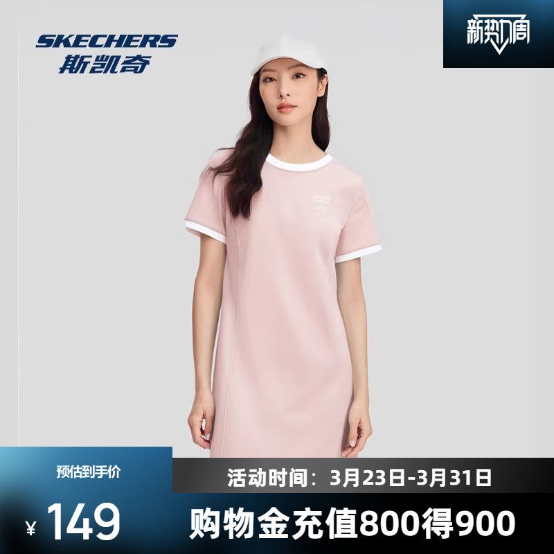 斯凯奇新品女士双层针织连衣裙吸湿速干舒适撞休闲百搭
