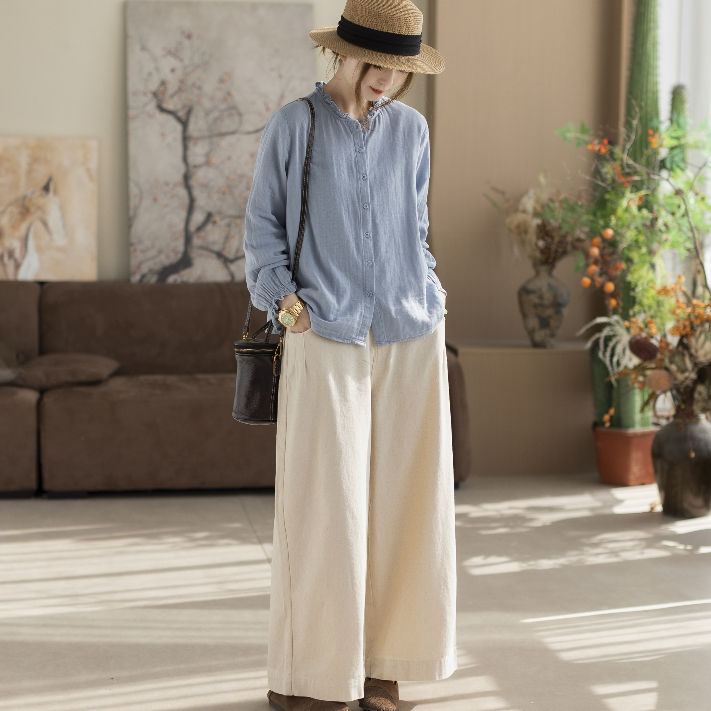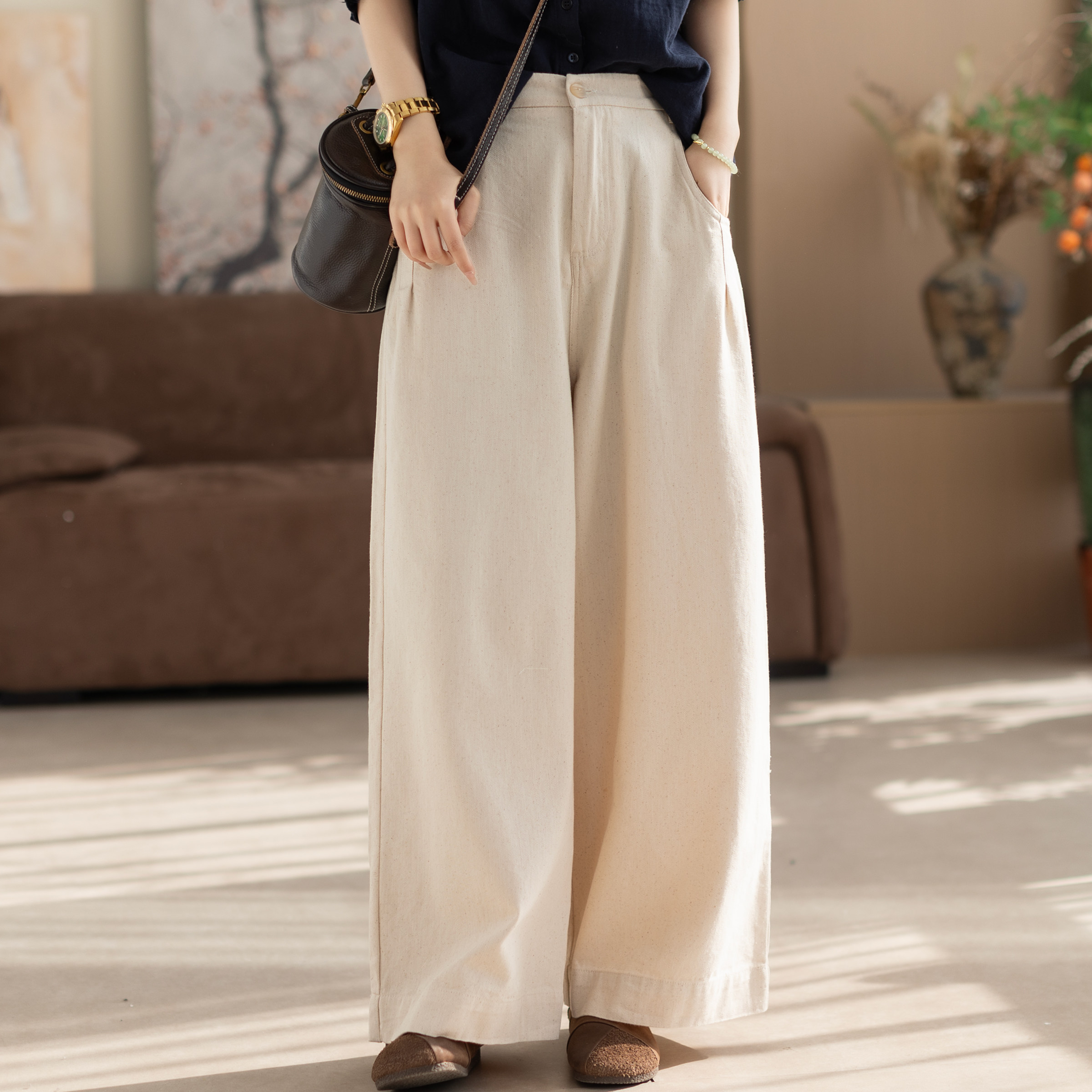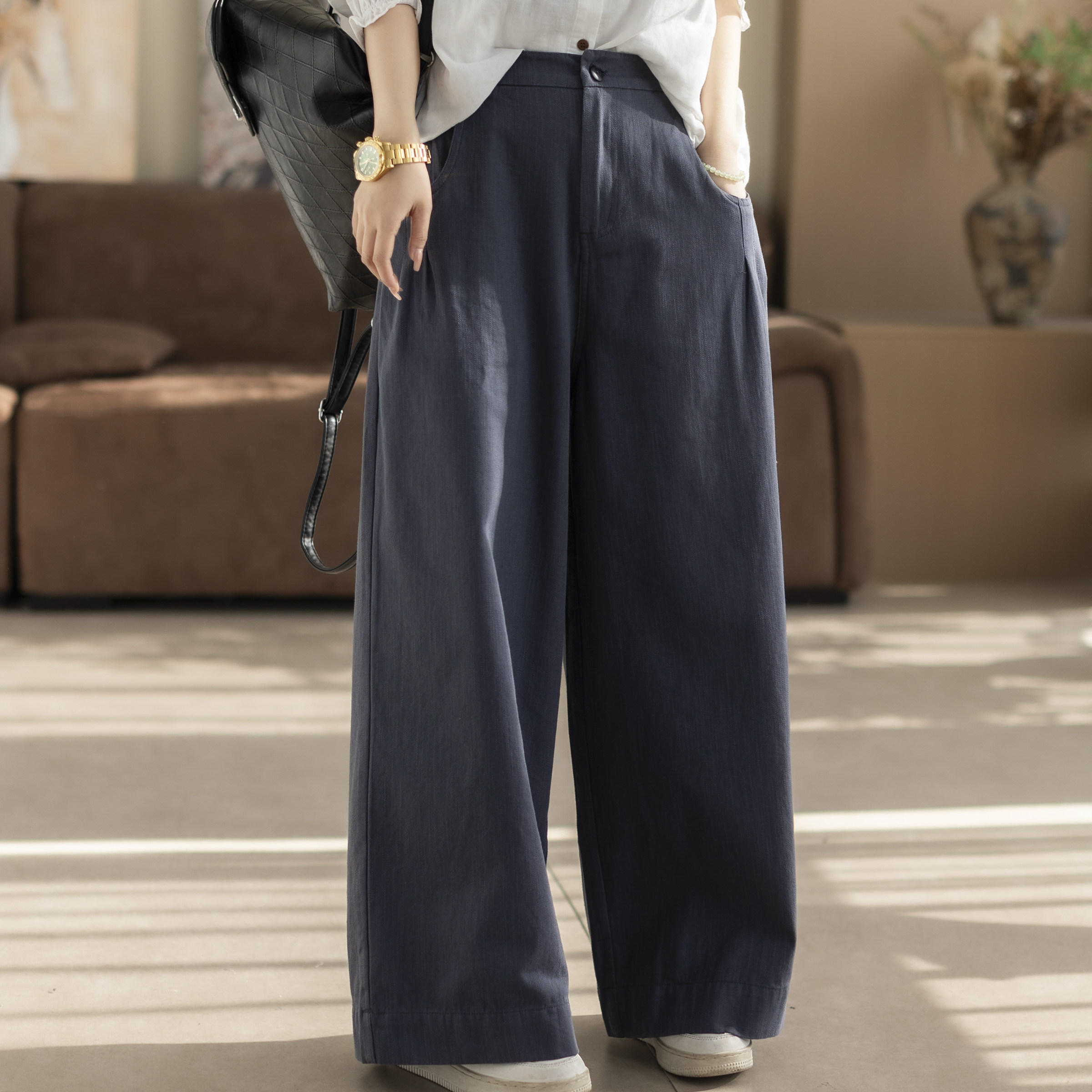 咖咪羽休闲裤女春秋新款女士棉麻宽松直筒洋气时尚流行女装裤子
