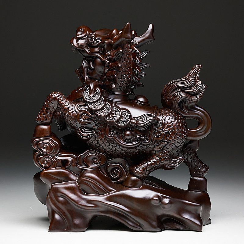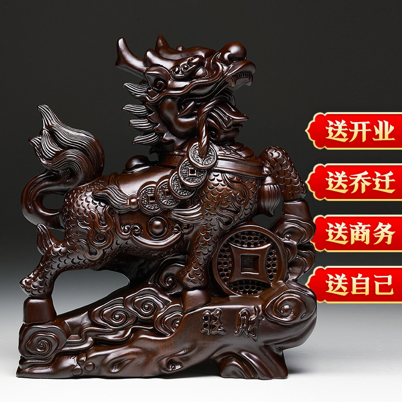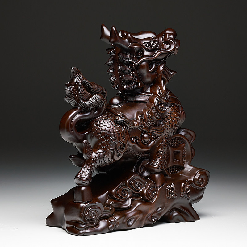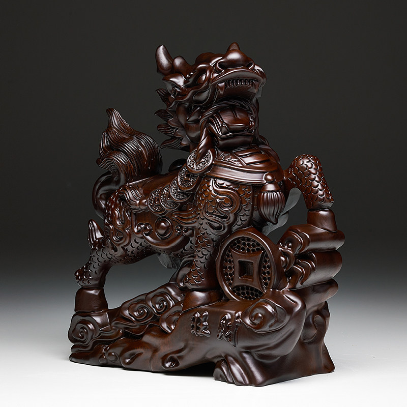 黑檀木雕麒麟摆件一对实木家用卧室客厅办公室开业送礼品乔迁桌面