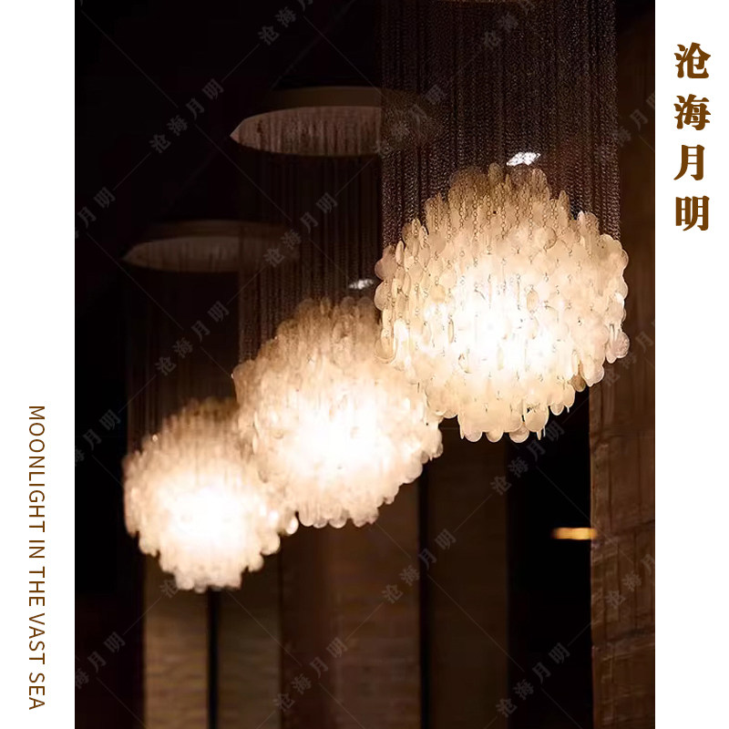法式工装大型贝壳吊灯客厅展厅高档别墅酒店商场旋转楼梯大气灯具