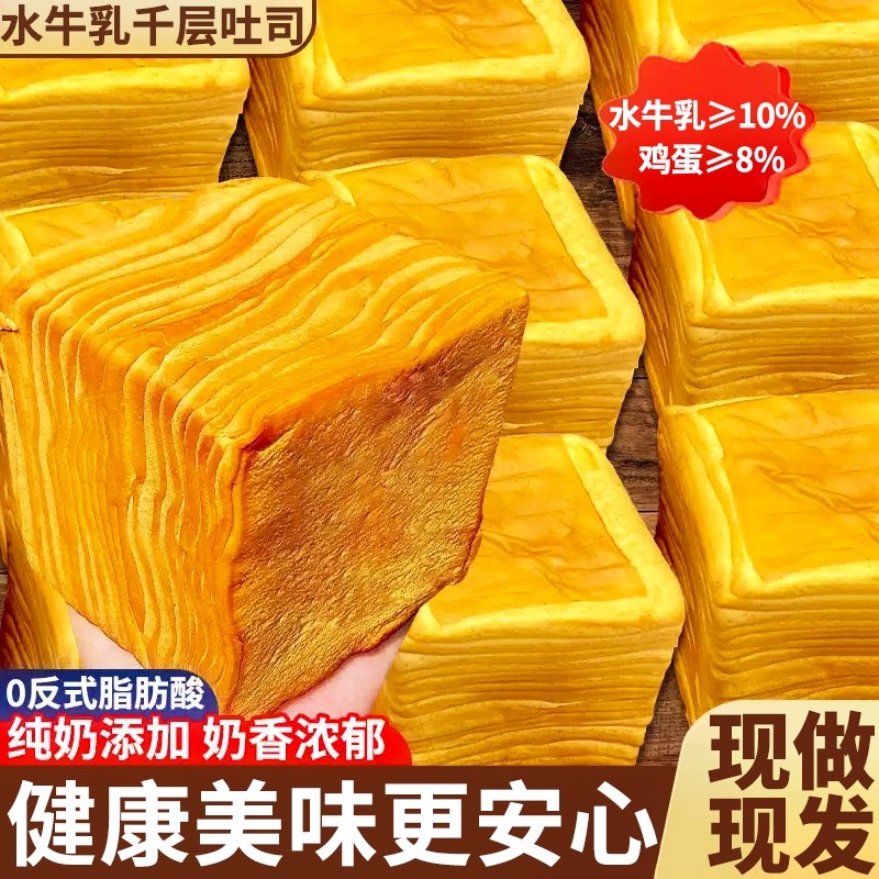 比比赞水牛乳千层魔方吐司手撕面包整箱早餐充饥健康零食小吃休闲
