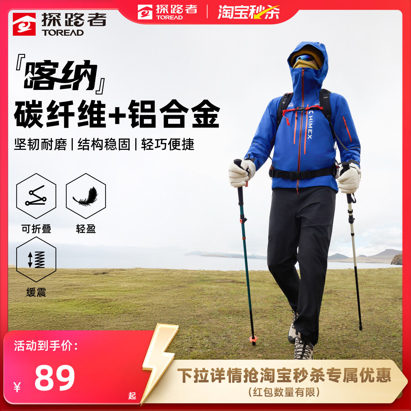 【羽翼】伯希和户外登山杖男碳纤维折叠手杖轻便专业徒步装备女款