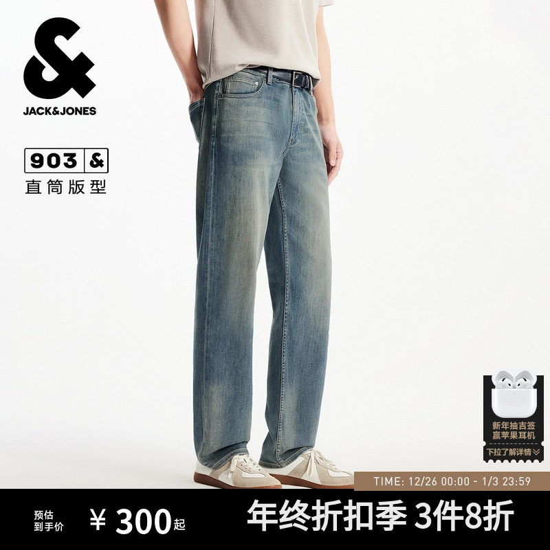 903杰克琼斯男装士复古风牛仔裤新款做旧水洗直筒长裤子秋季男款